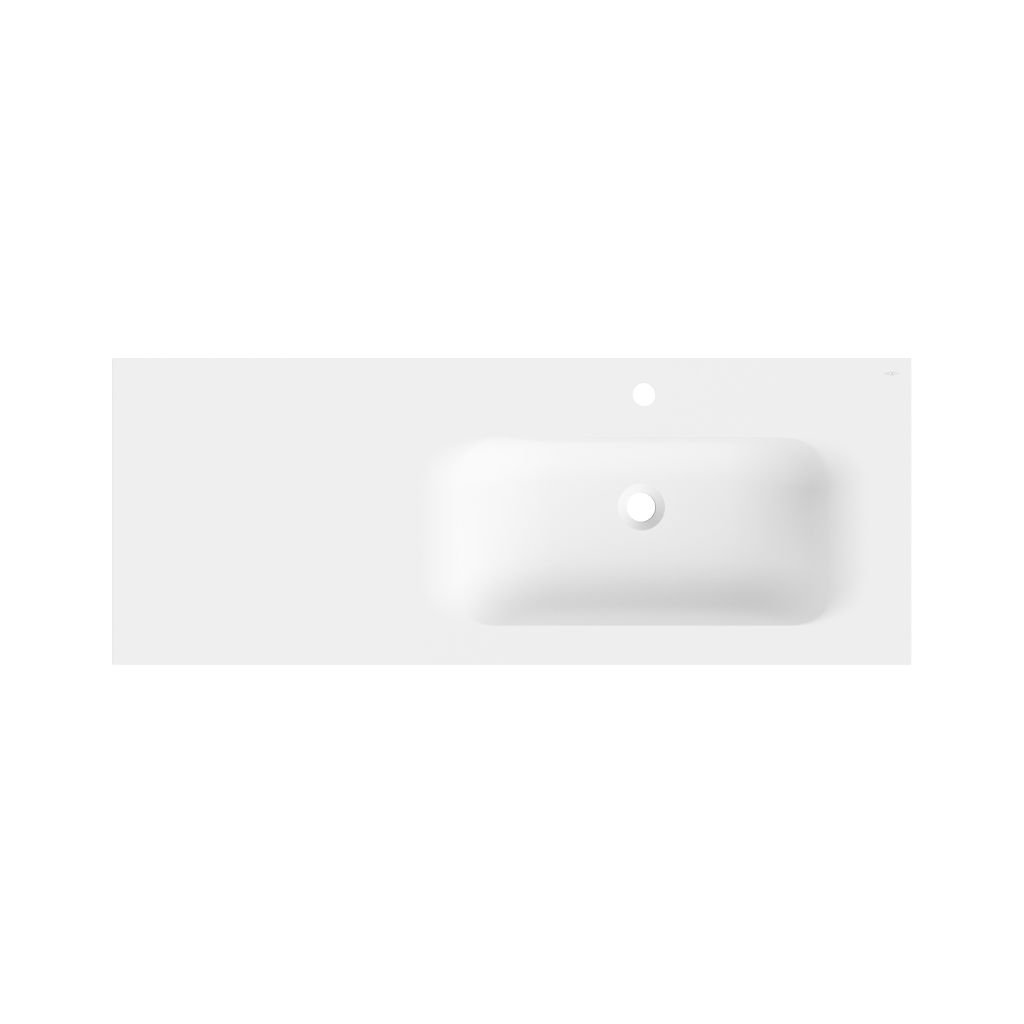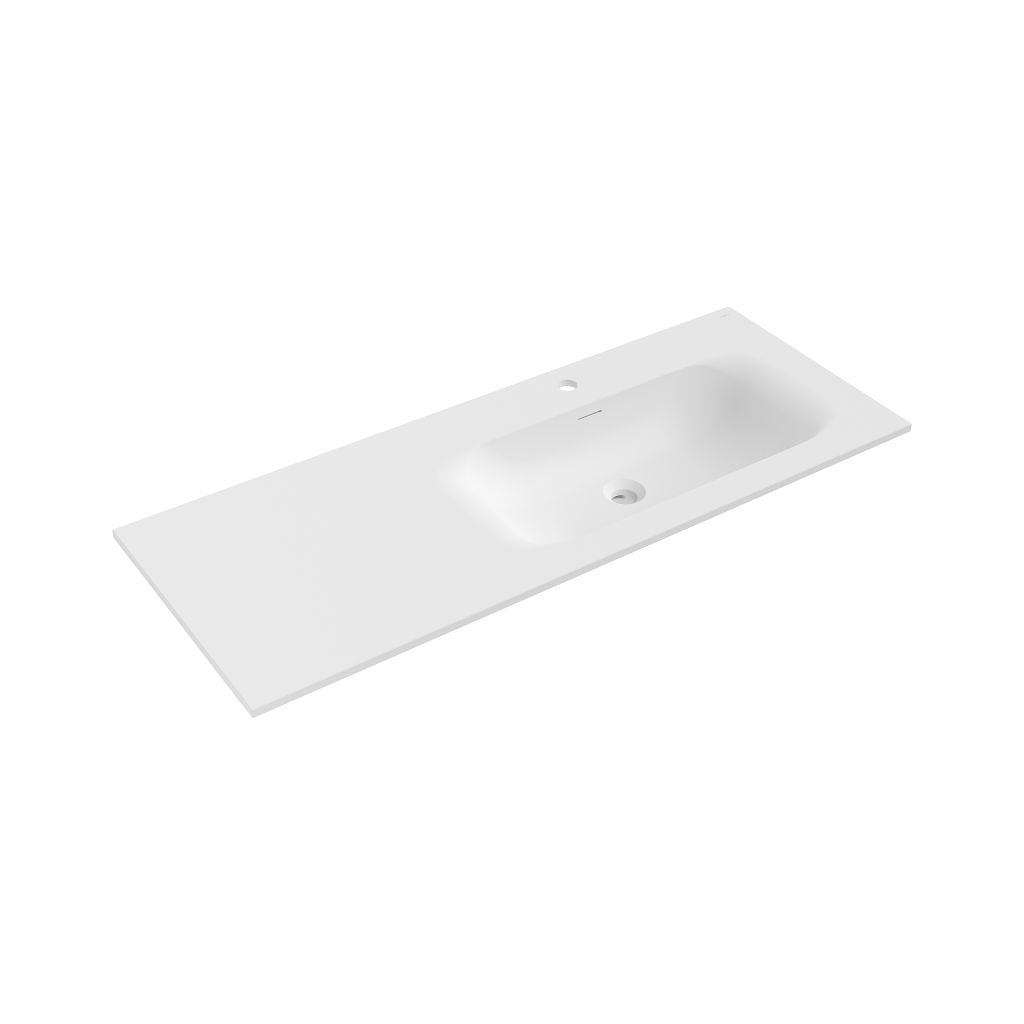Technické údaje: Rozmery: 121x46,5x16,5 cm Hĺbka: 12 cm Typ: Zapustenie do dosky, pravá strana Farba: biela matná Materiál: konglomerát Prepadový otvor: Áno Otvor na batériu: ÁnoDodatočné parametre