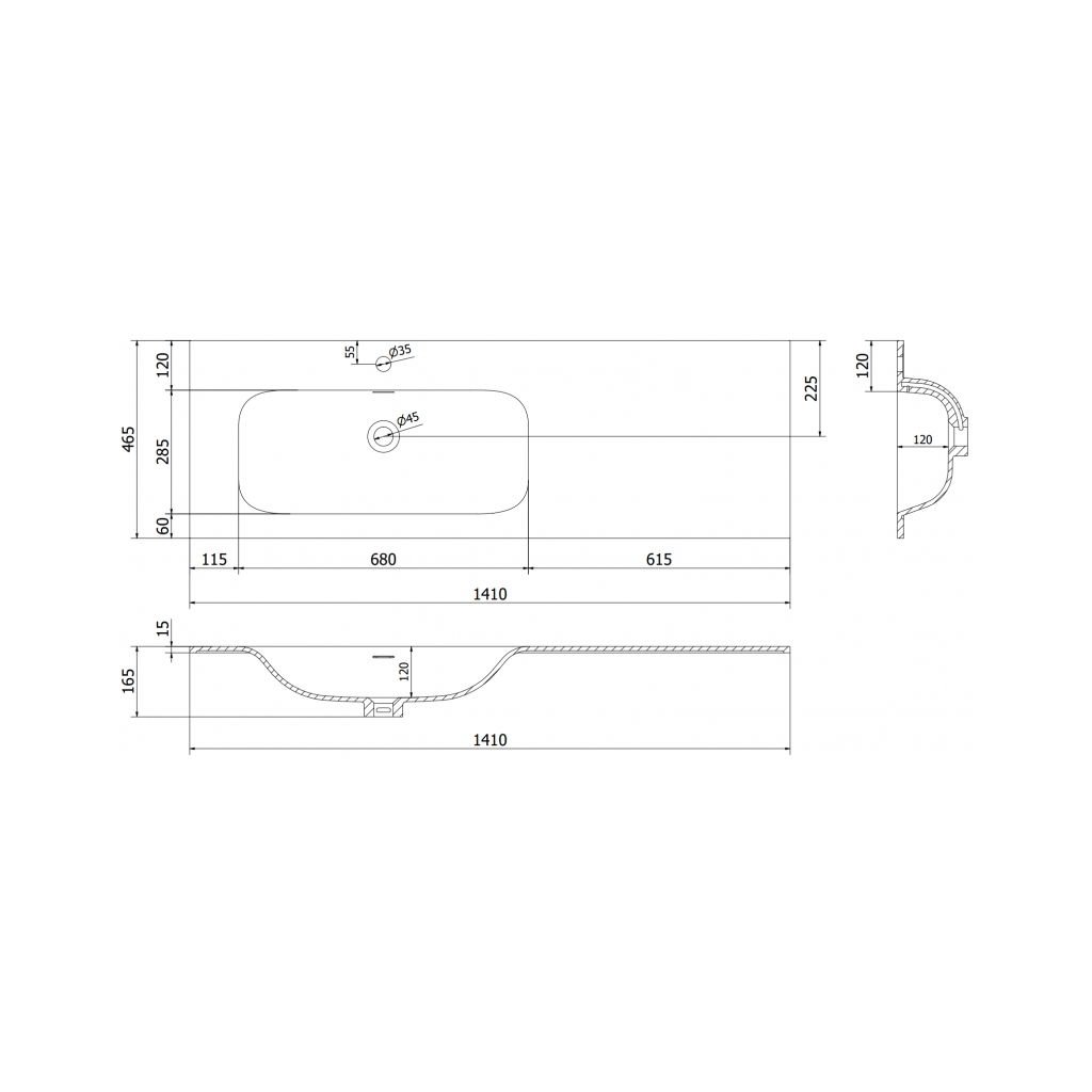 Mexen Vela, umývadlo na zapustenie 141 x 46,5 cm, ľavé, čierna matná, 25231471L