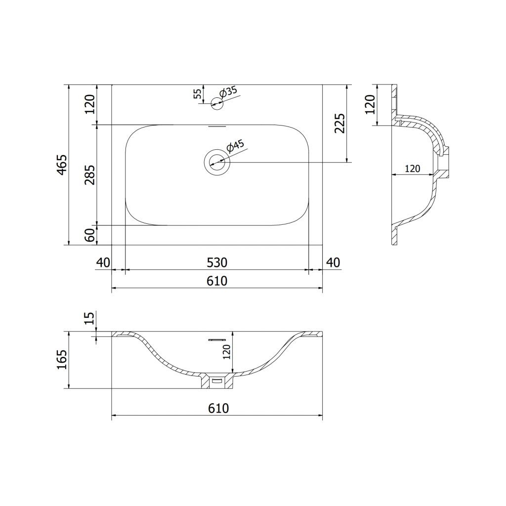 Mexen Vela, umývadlo na zapustenie 61 x 46,5 cm, čierna matná, 25236071