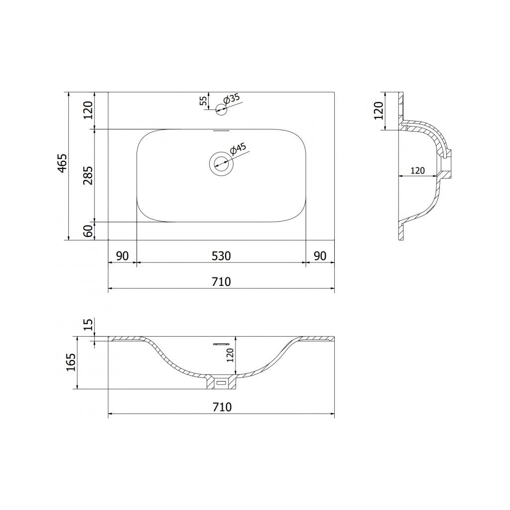 Mexen Vela, umývadlo na zapustenie 71 x 46,5 cm, biela matná, 25237001