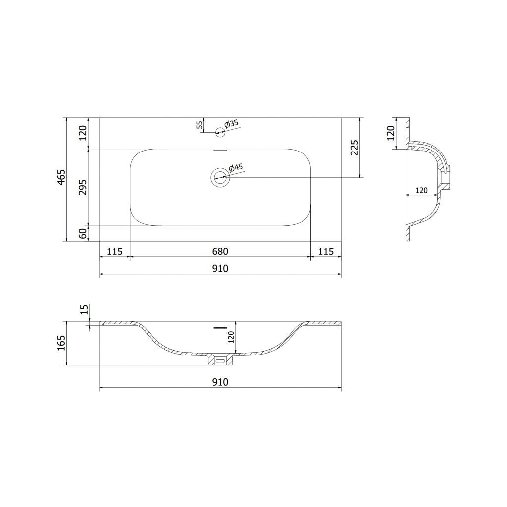 Technické údaje: Rozmery: 91x46,5x16,5 cm Hĺbka: 12 cm Typ: Zapustenie do pracovnej dosky Farba: čierna matná Materiál: konglomerát Prepadový otvor: Áno Otvor na batériu: ÁnoDodatočné parametre