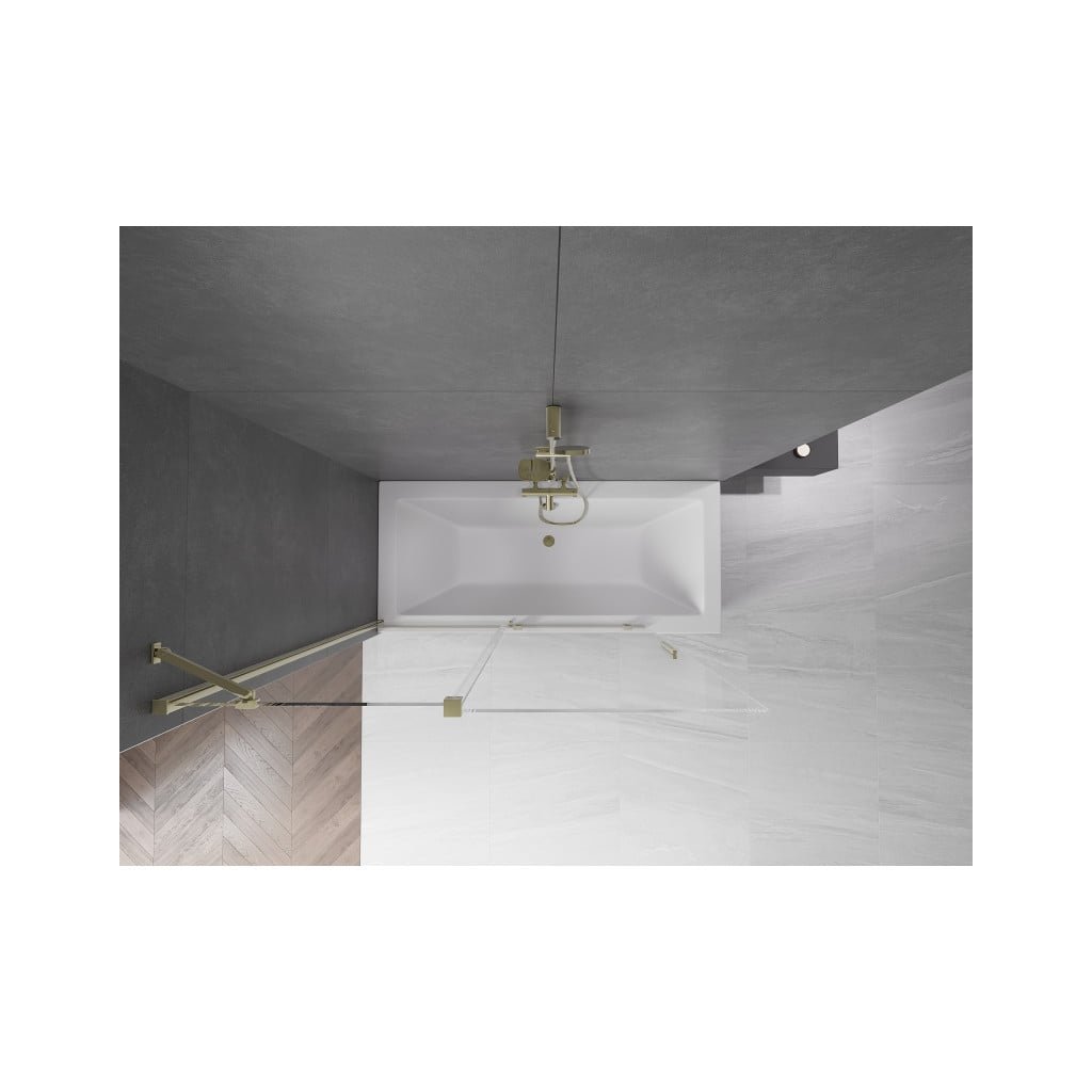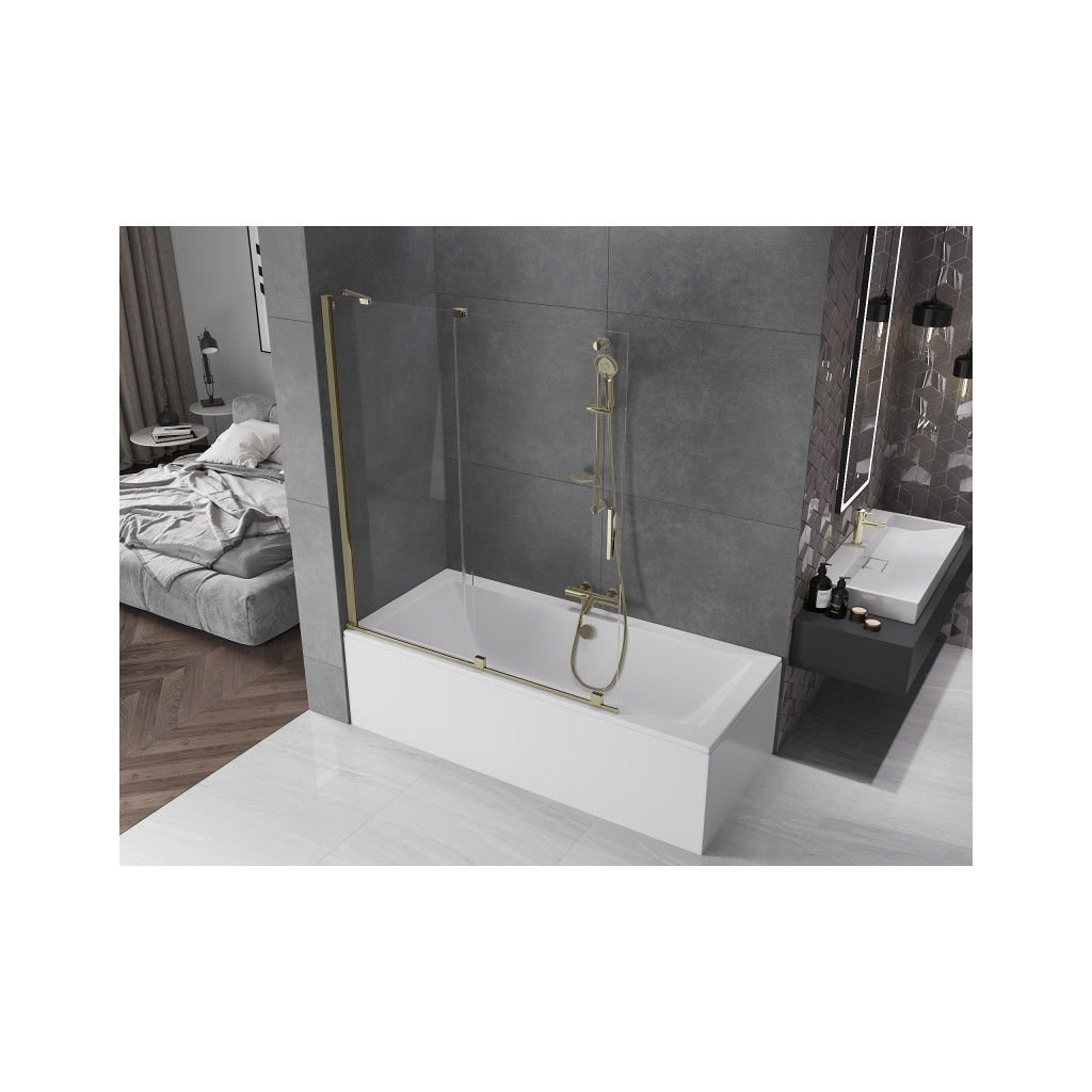 Mexen Velar, 2-krídlová posuvná vaňová zástena 140 x 150 cm, 8mm číre sklo, zlatý lesklý profil, 896-140-000-01-50