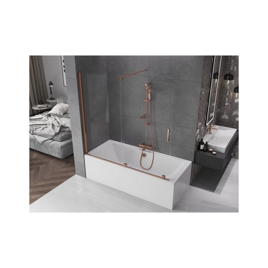 Mexen Velar, 2-krídlová posuvná vaňová zástena 170 x 150 cm, 8mm číre sklo, ružové zlato, 896-170-000-01-60