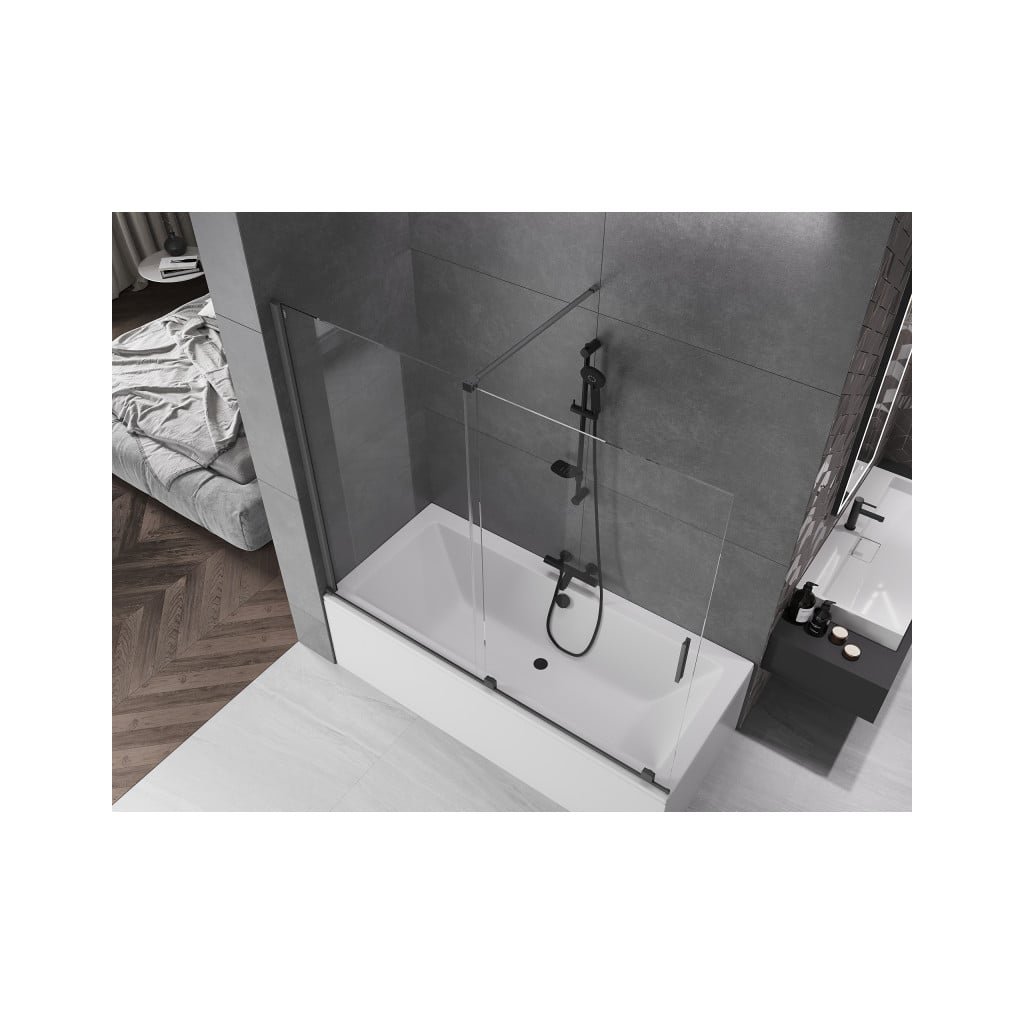 Mexen Velar, 2-krídlová posuvná vaňová zástena 180 x 150 cm, 8mm číre sklo, grafitový matný profil, 896-180-000-01-66