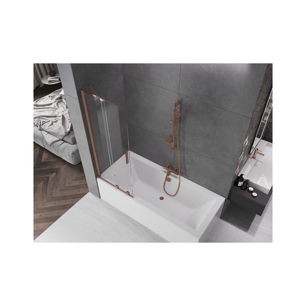 Mexen Velar, 2-krídlová posuvná vaňová zástena 70 x 150 cm, 8mm číre sklo, medená matná, 896-070-000-01-65