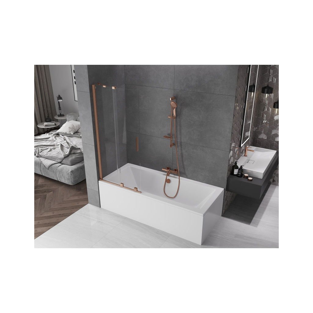 Mexen Velar, 2-krídlová posuvná vaňová zástena 85 x 150 cm, 8mm číre sklo, medená matná, 896-085-000-01-65