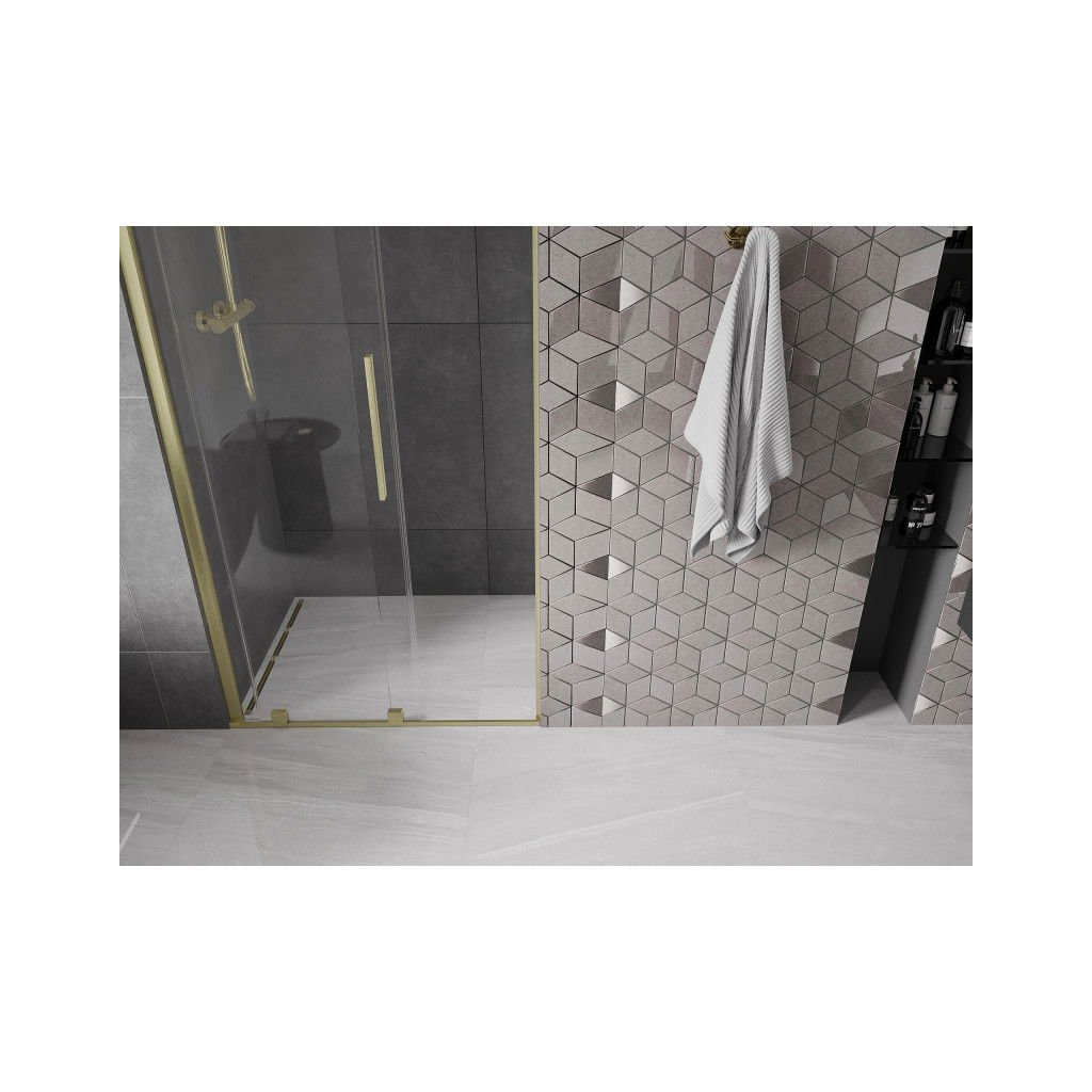 Mexen Velar, posuvné dvere do otvoru 110x200 cm, 8mm číre sklo, zlatá matná, 871-110-000-01-55