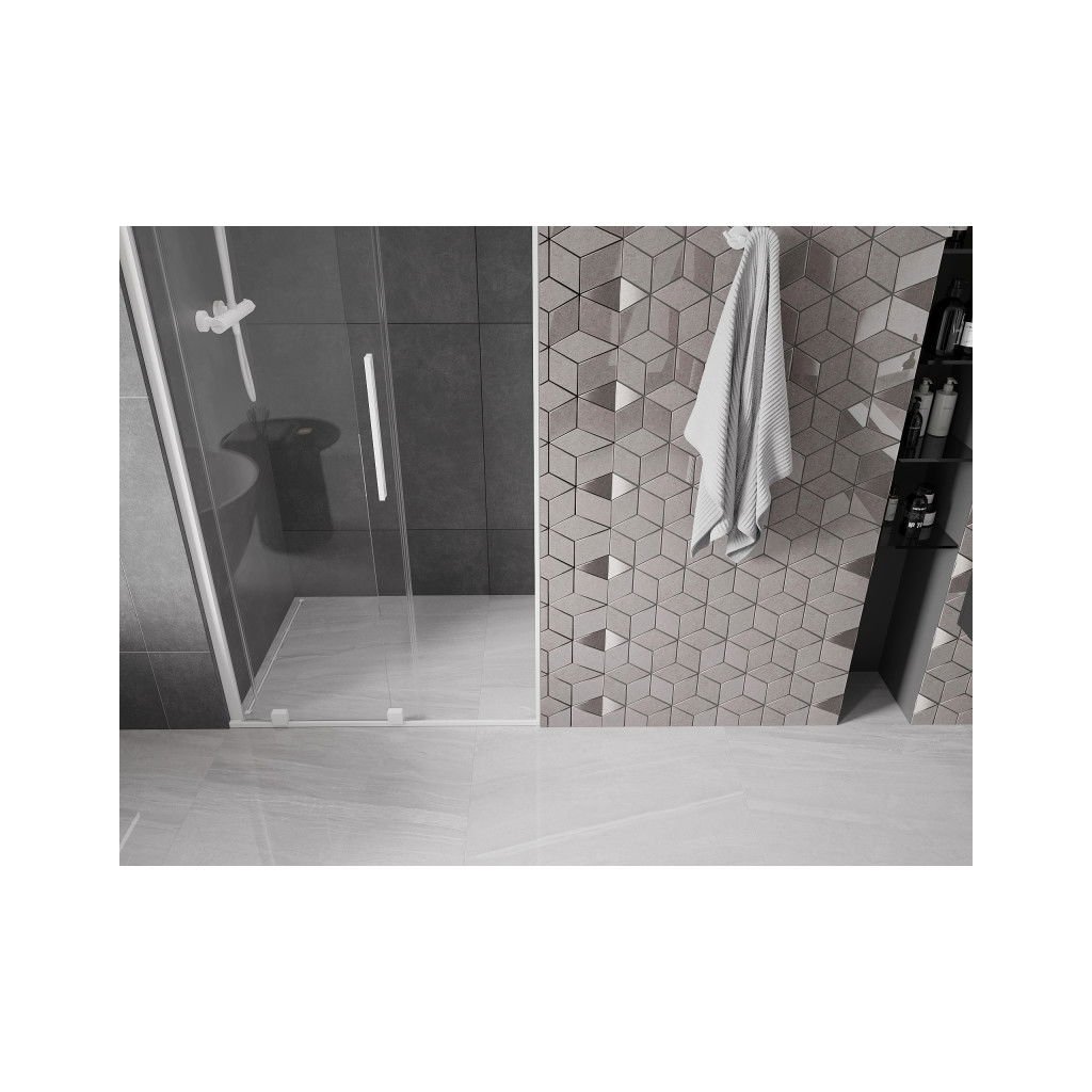 Mexen Velar, posuvné dvere do otvoru 120x200 cm, 8mm číre sklo, biely profil, 871-120-000-01-20