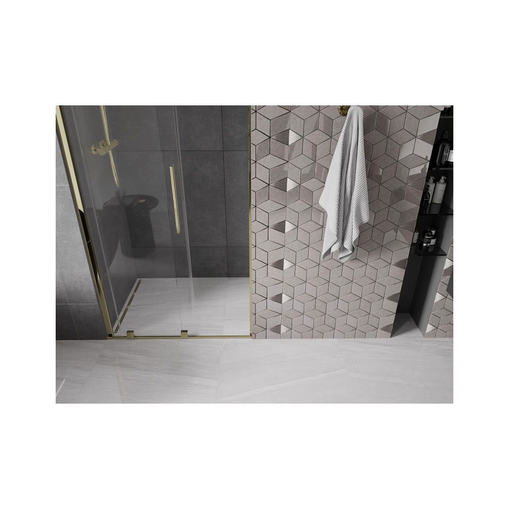 Mexen Velar, posuvné dvere do otvoru 120x200 cm, 8mm číre sklo, zlatá lesklá, 871-120-000-01-50