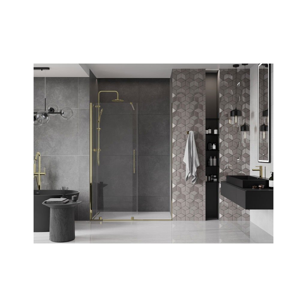 Mexen Velar, posuvné dvere do otvoru 130x200 cm, 8mm číre sklo, zlatá lesklá, 871-130-000-01-50