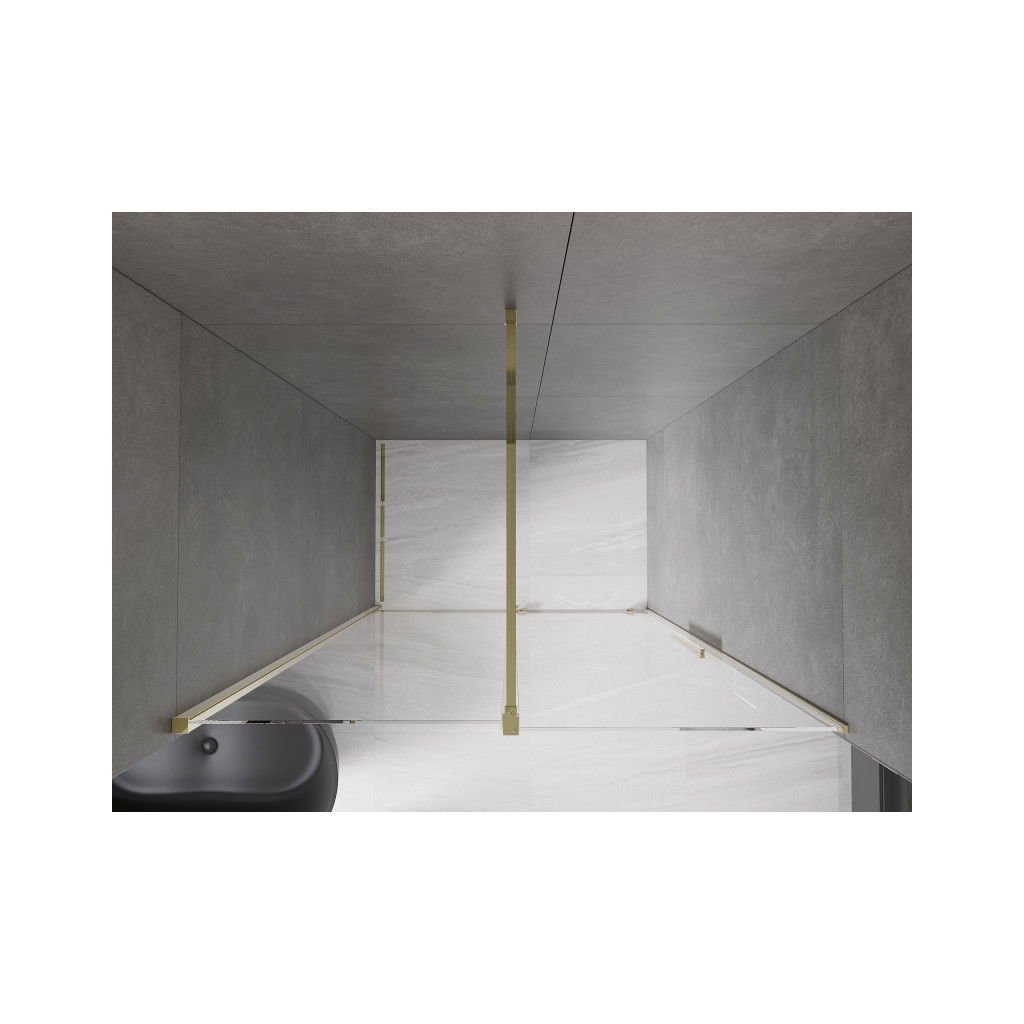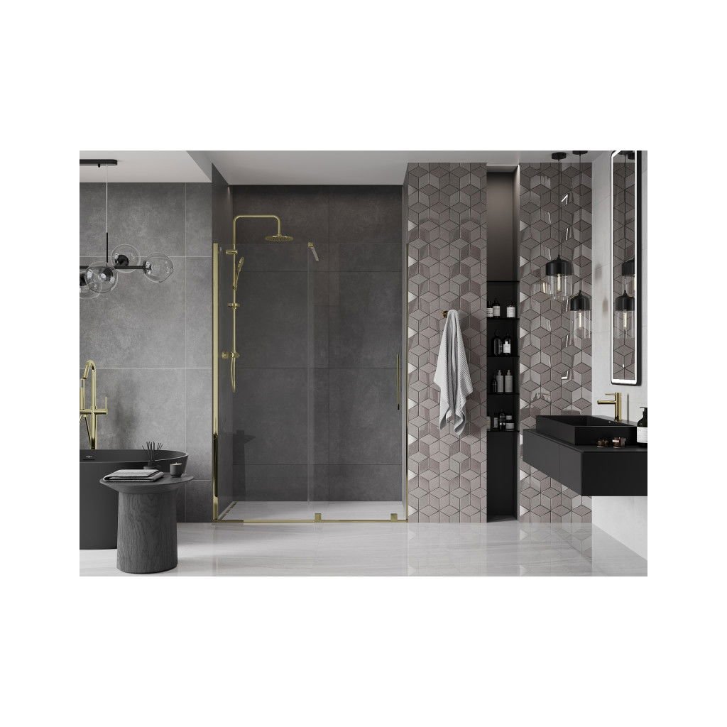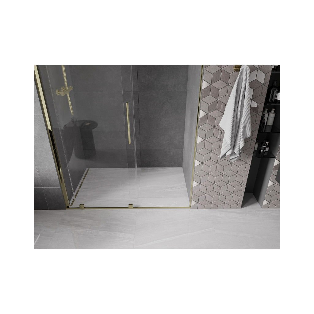 Mexen Velar, posuvné dvere do otvoru 140x200 cm, 8mm číre sklo, zlatá lesklá, 871-140-000-01-50