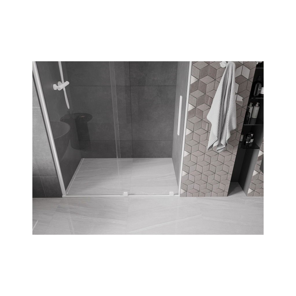 Mexen Velar, posuvné dvere do otvoru 150x200 cm, 8mm číre sklo, biely profil, 871-150-000-01-20