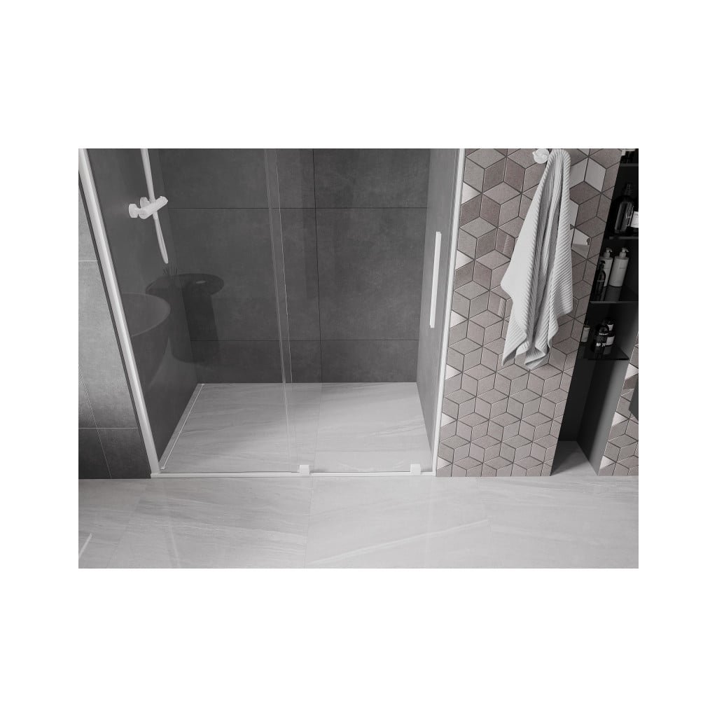 Mexen Velar, posuvné dvere do otvoru 160x200 cm, 8mm číre sklo, biely profil, 871-160-000-01-20