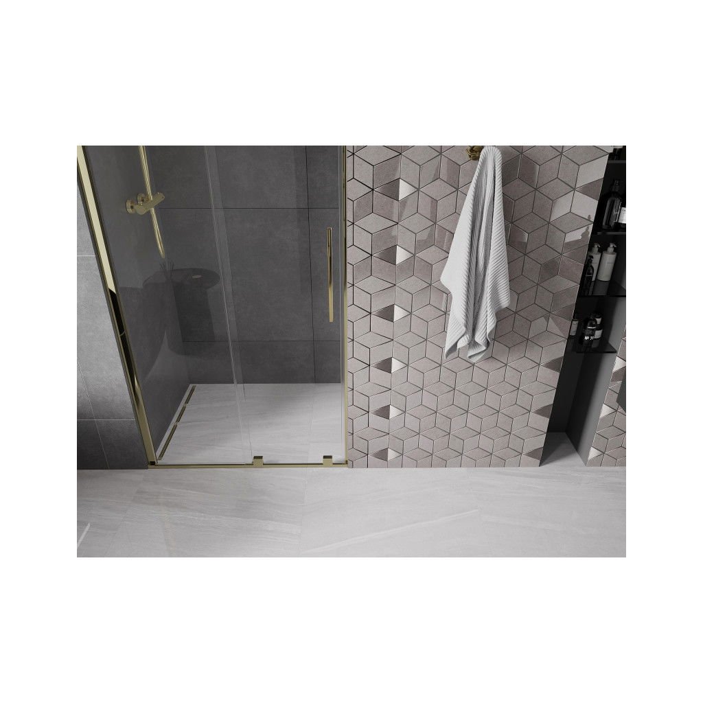 Mexen Velar, posuvné dvere do otvoru 90x200 cm, 8mm číre sklo, zlatá lesklá, 871-090-000-01-50