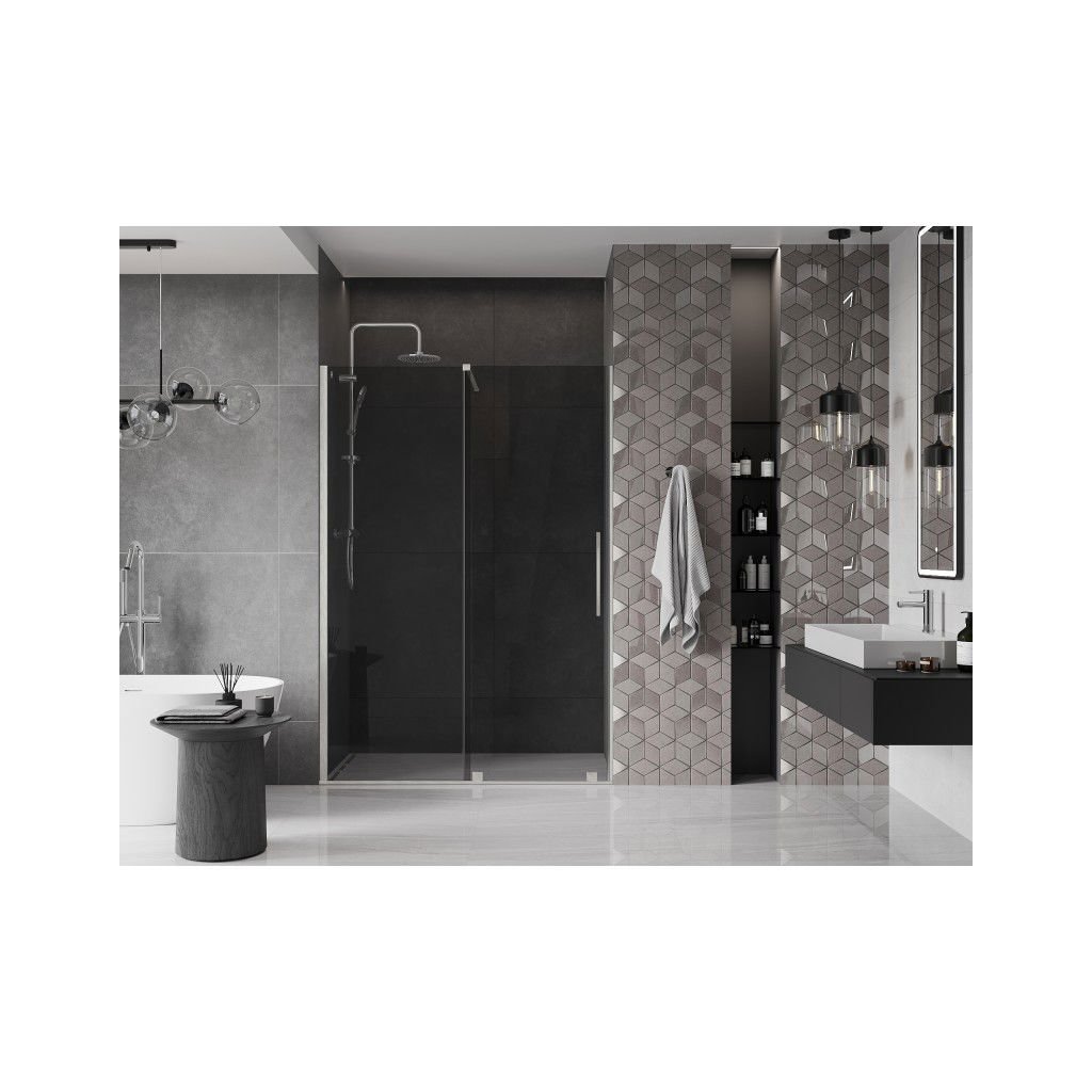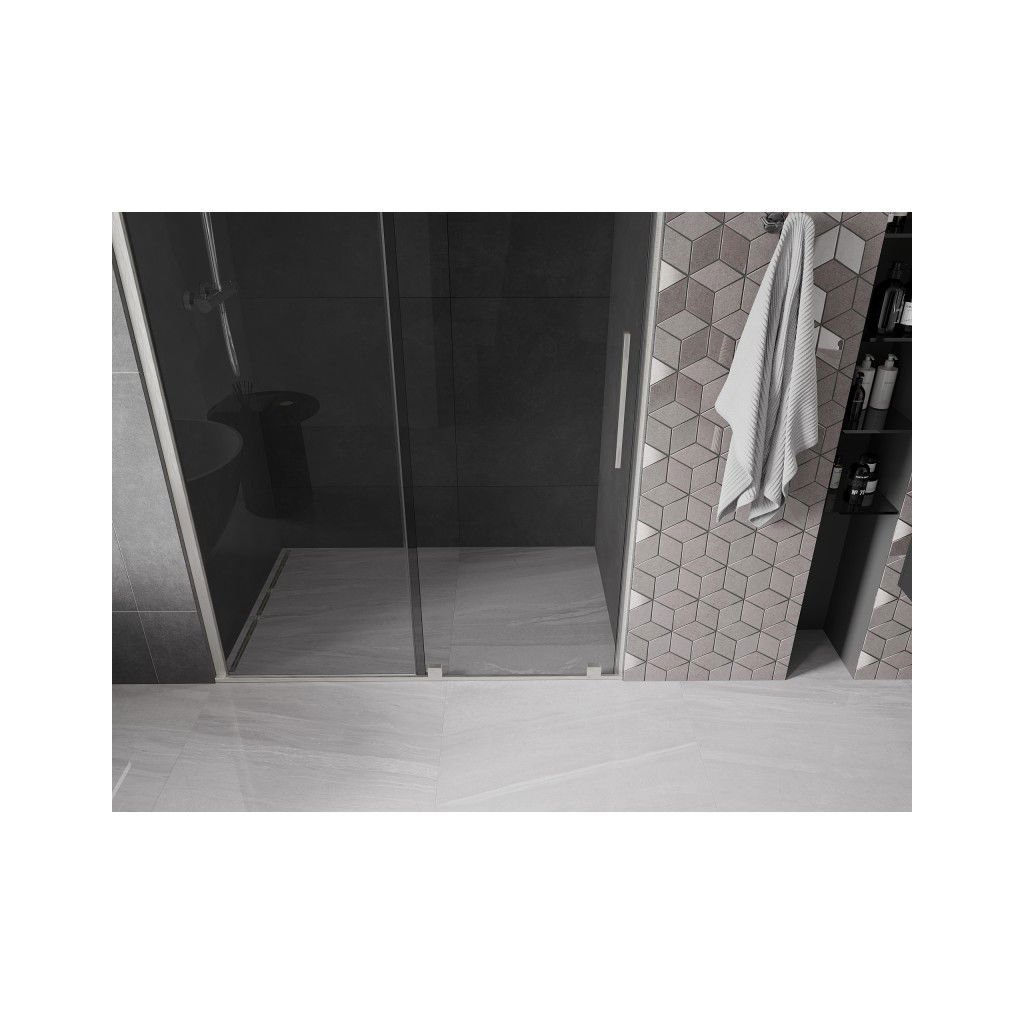 Mexen Velar, posuvné sprchové dvere do otvoru 130 cm, 8mm šedé sklo, brúsená oceľ, 871-130-000-41-97
