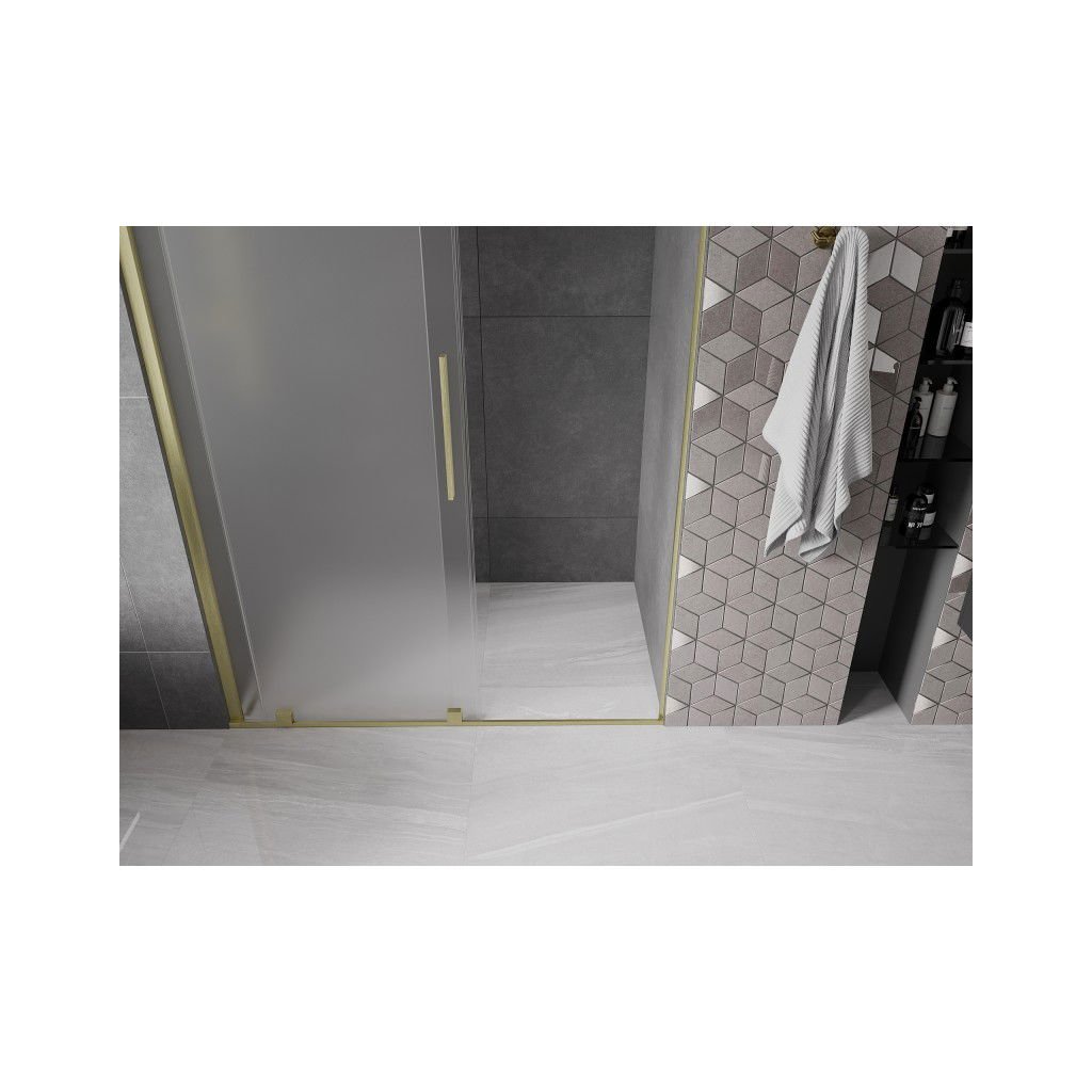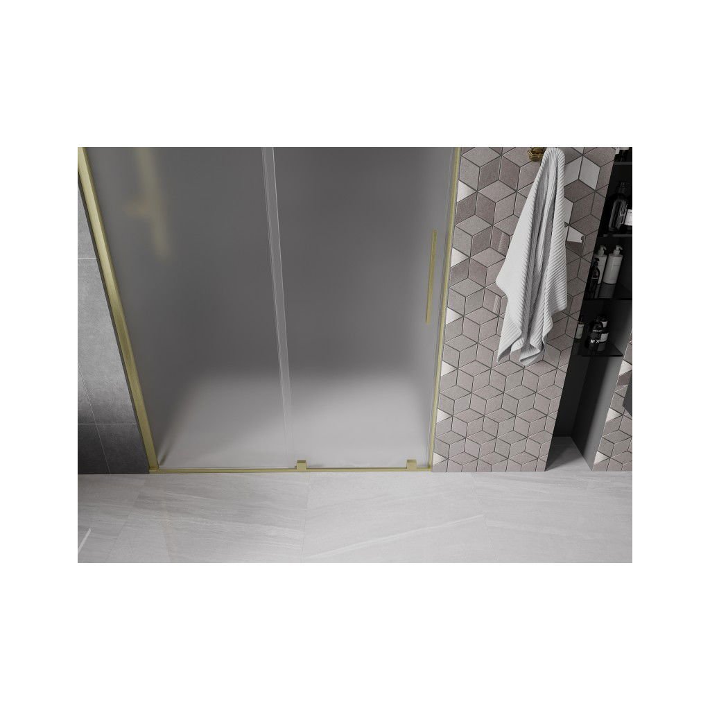 Mexen Velar, posuvné sprchové dvere do otvoru 130 cm, 8mm sklo námraza, zlatá matná, 871-130-000-31-55