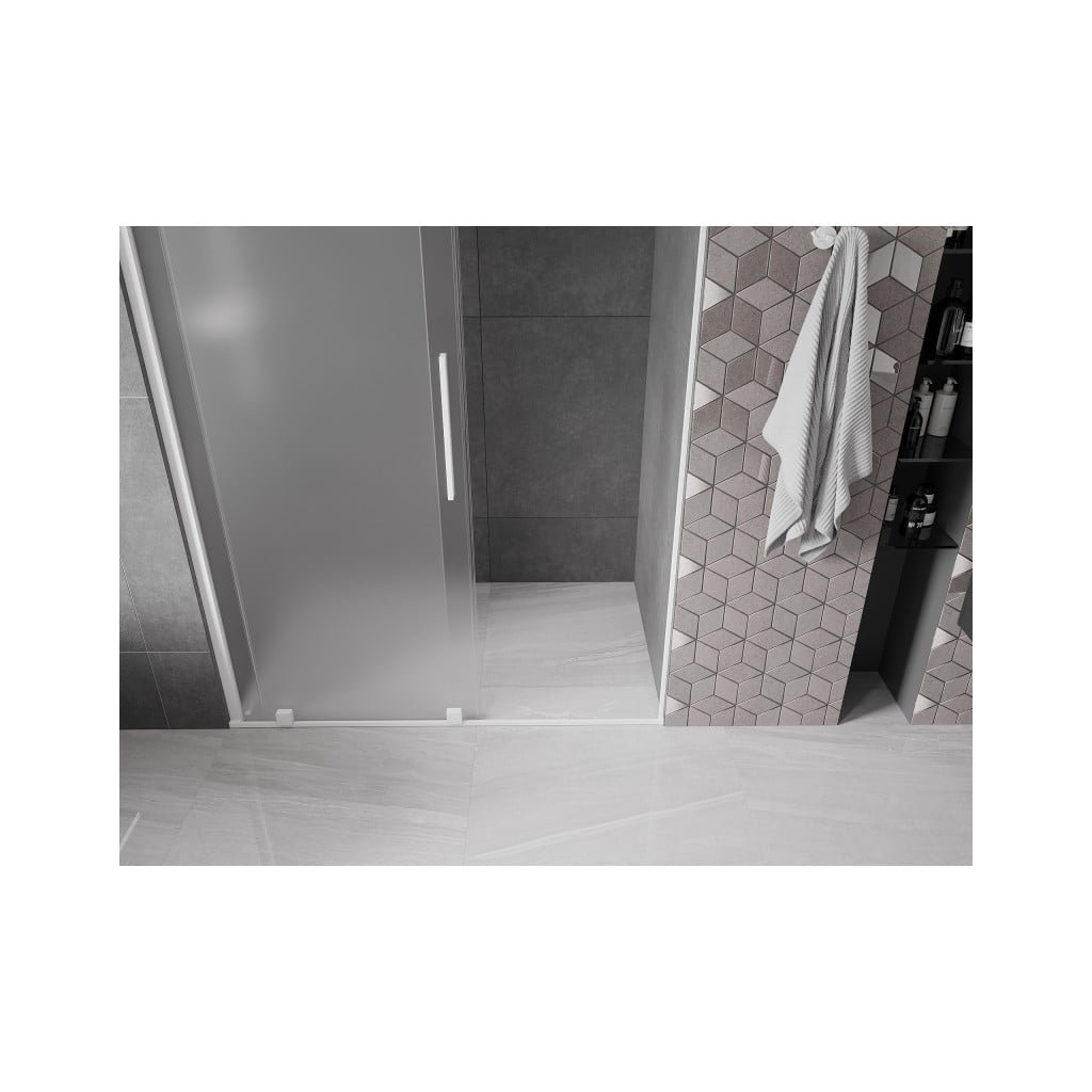 Mexen Velar, posuvné sprchové dvere do otvoru 150 cm, 8mm sklo námraza, biela matná, 871-150-000-31-20