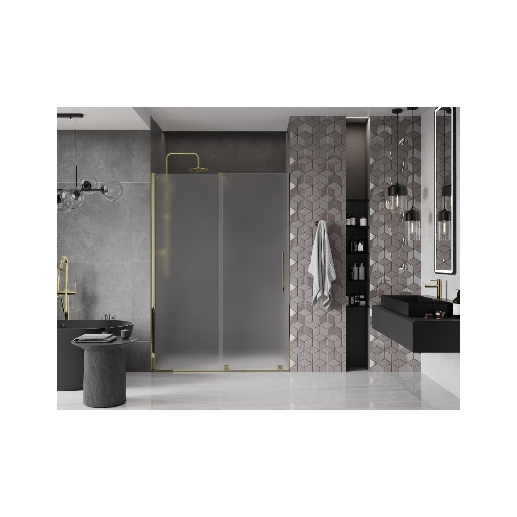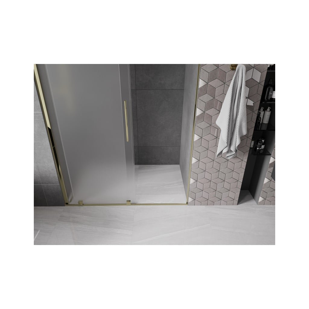 Mexen Velar, posuvné sprchové dvere do otvoru 150 cm, 8mm sklo námraza, zlatá lesklá, 871-150-000-31-50