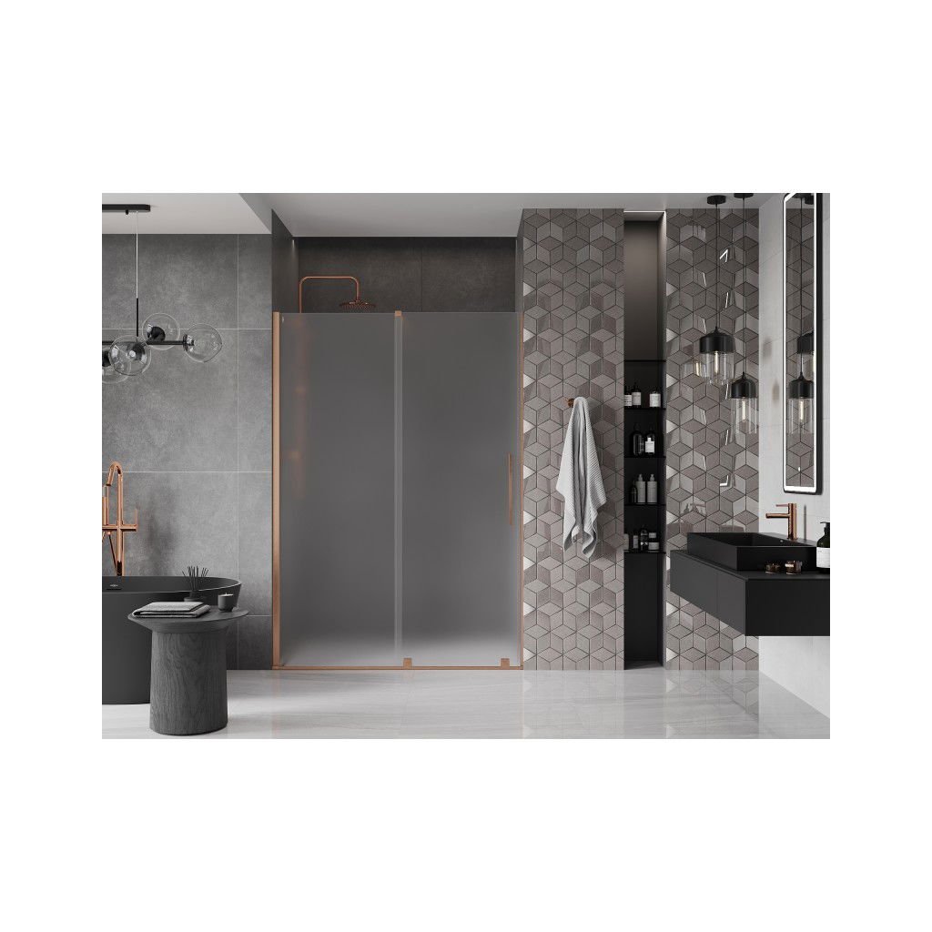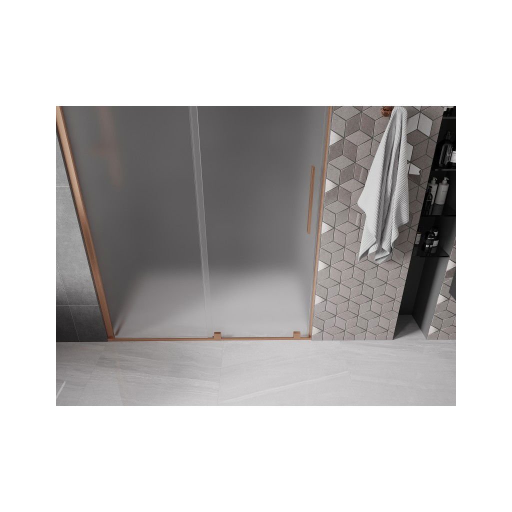 Mexen Velar, posuvné sprchové dvere do otvoru 160 cm, 8mm sklo námraza, medená matná, 871-160-000-31-65