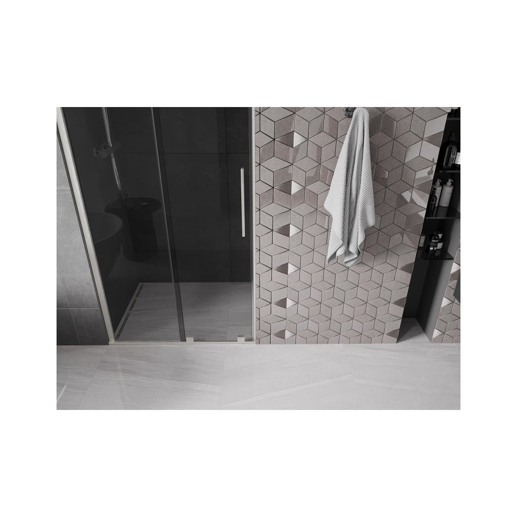 Mexen Velar, posuvné sprchové dvere do otvoru 90 cm, 8mm šedé sklo, brúsená oceľ, 871-090-000-41-97