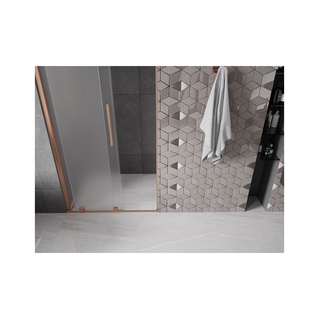 Mexen Velar, posuvné sprchové dvere do otvoru 90 cm, 8mm sklo námraza, medená matná, 871-090-000-31-65