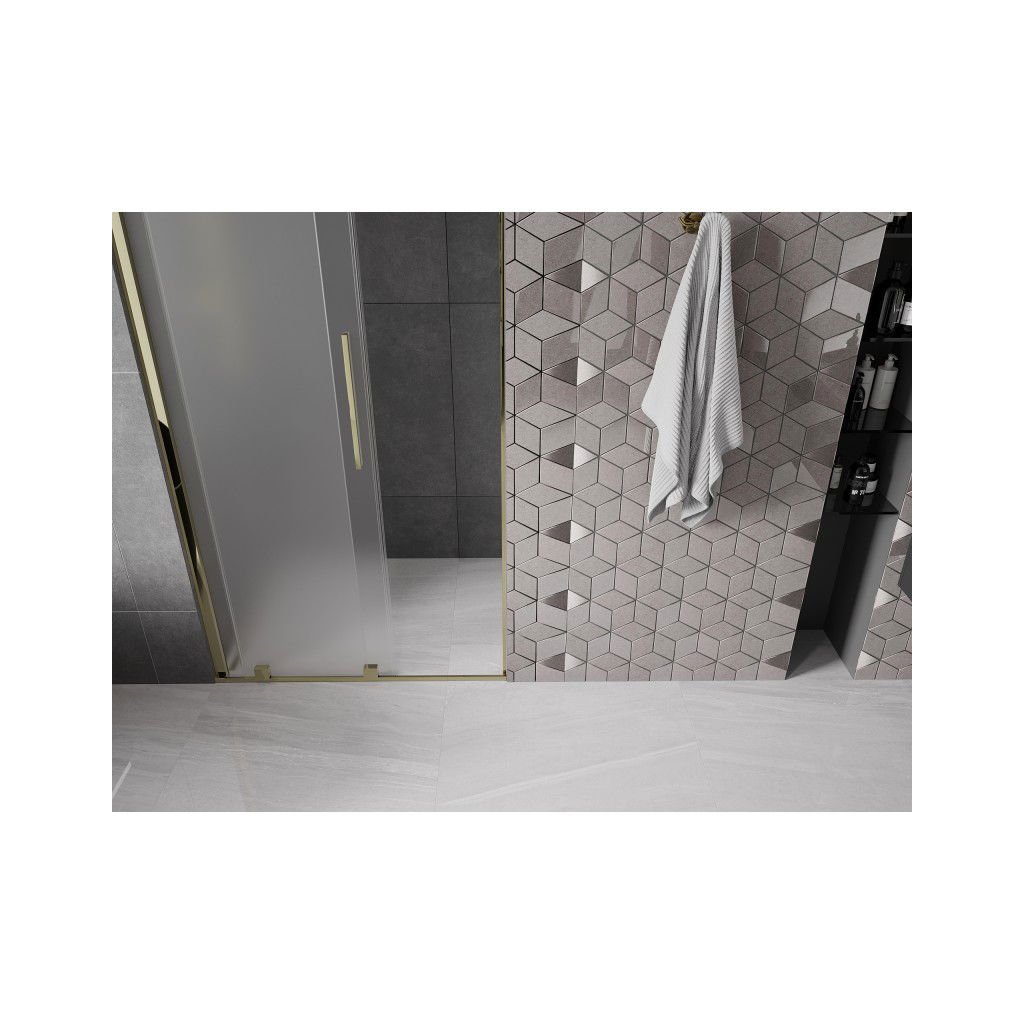 Mexen Velar, posuvné sprchové dvere do otvoru 90 cm, 8mm sklo námraza, zlatá lesklá, 871-090-000-31-50