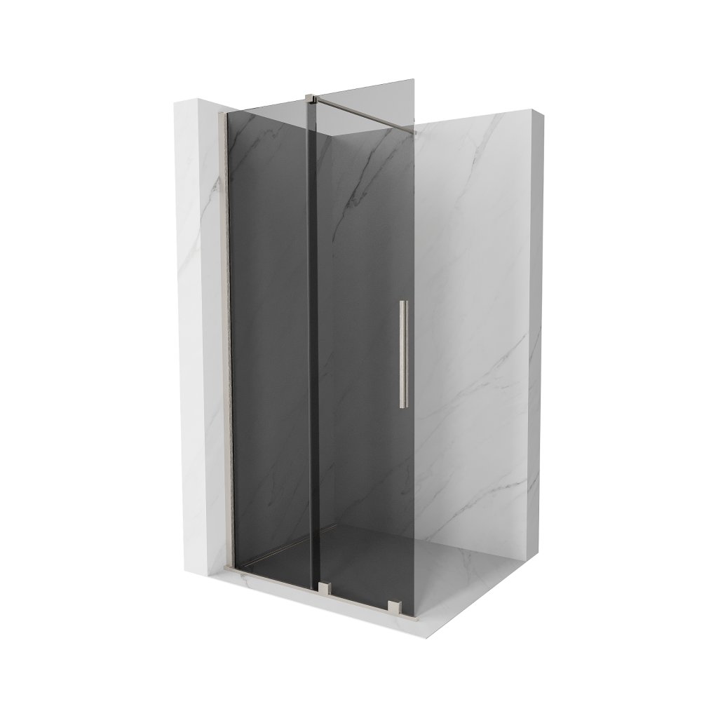 Mexen Velar, sprchová zástena s posuvnými dverami Walk-in 100 x 200 cm, 8mm šedé sklo, brúsená oceľ, 871-100-000-43-97