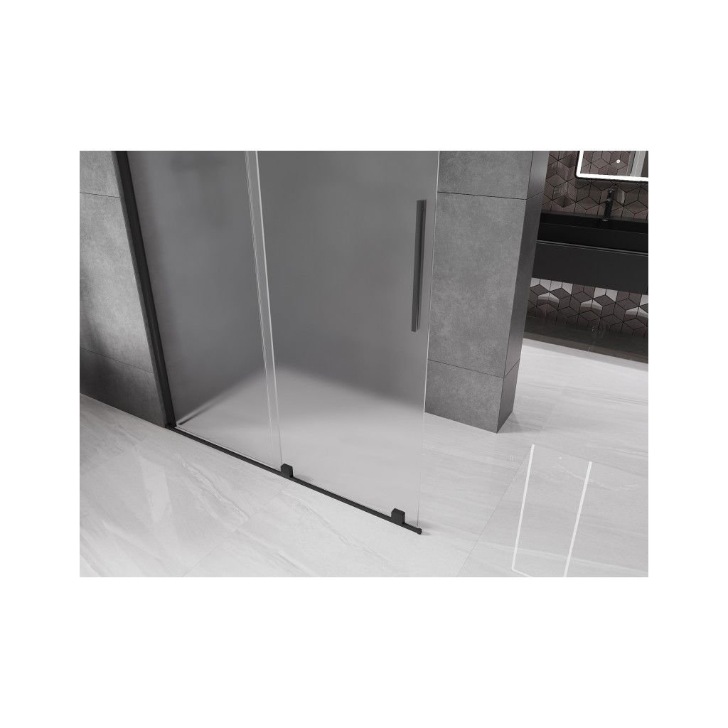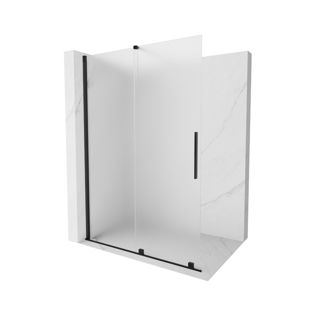 Mexen Velar, sprchová zástena s posuvnými dverami Walk-in 130 x 200 cm, 8mm sklo námraza, čierna matná, 871-130-000-33-70