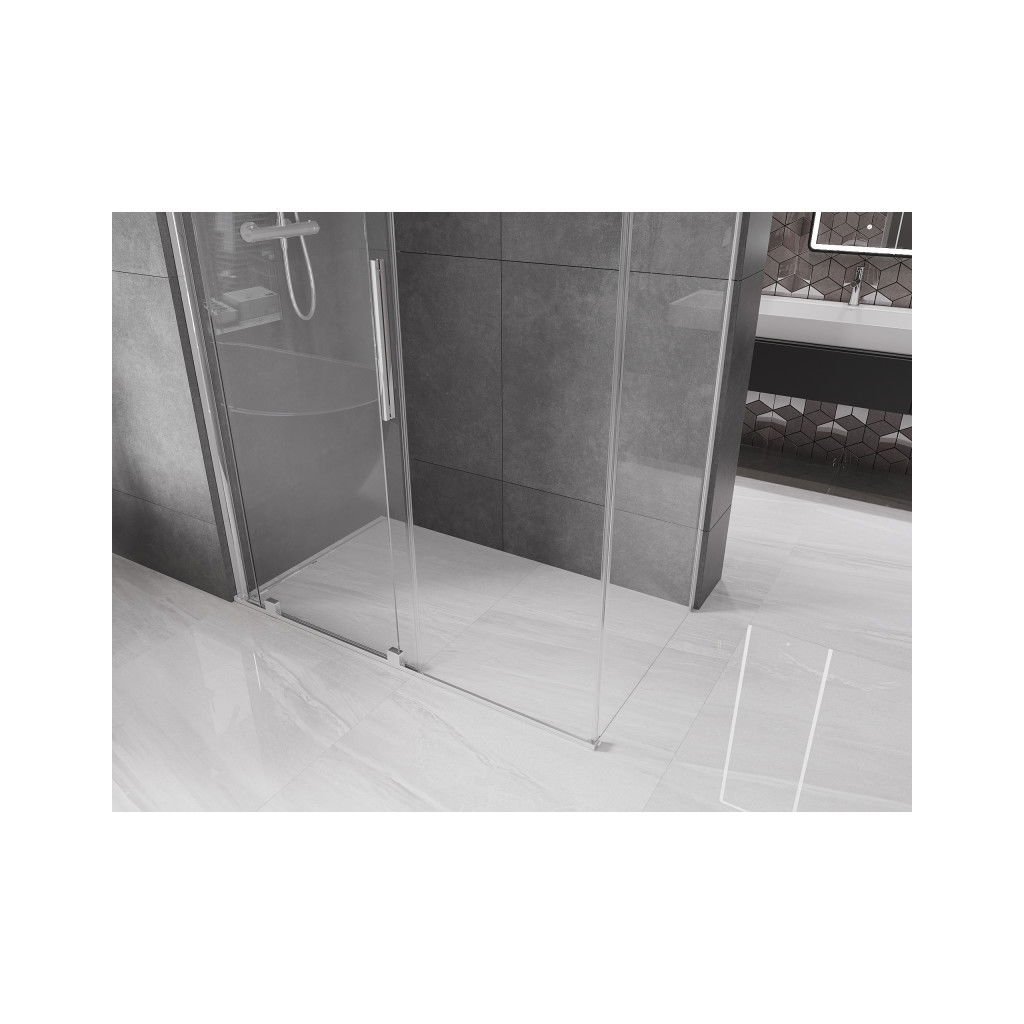 Mexen Velar, sprchový kút s posuvnými dverami 140(dvere) x 75(stena) cm, 8mm číre sklo, chrómový profil, 871-140-075-01-01