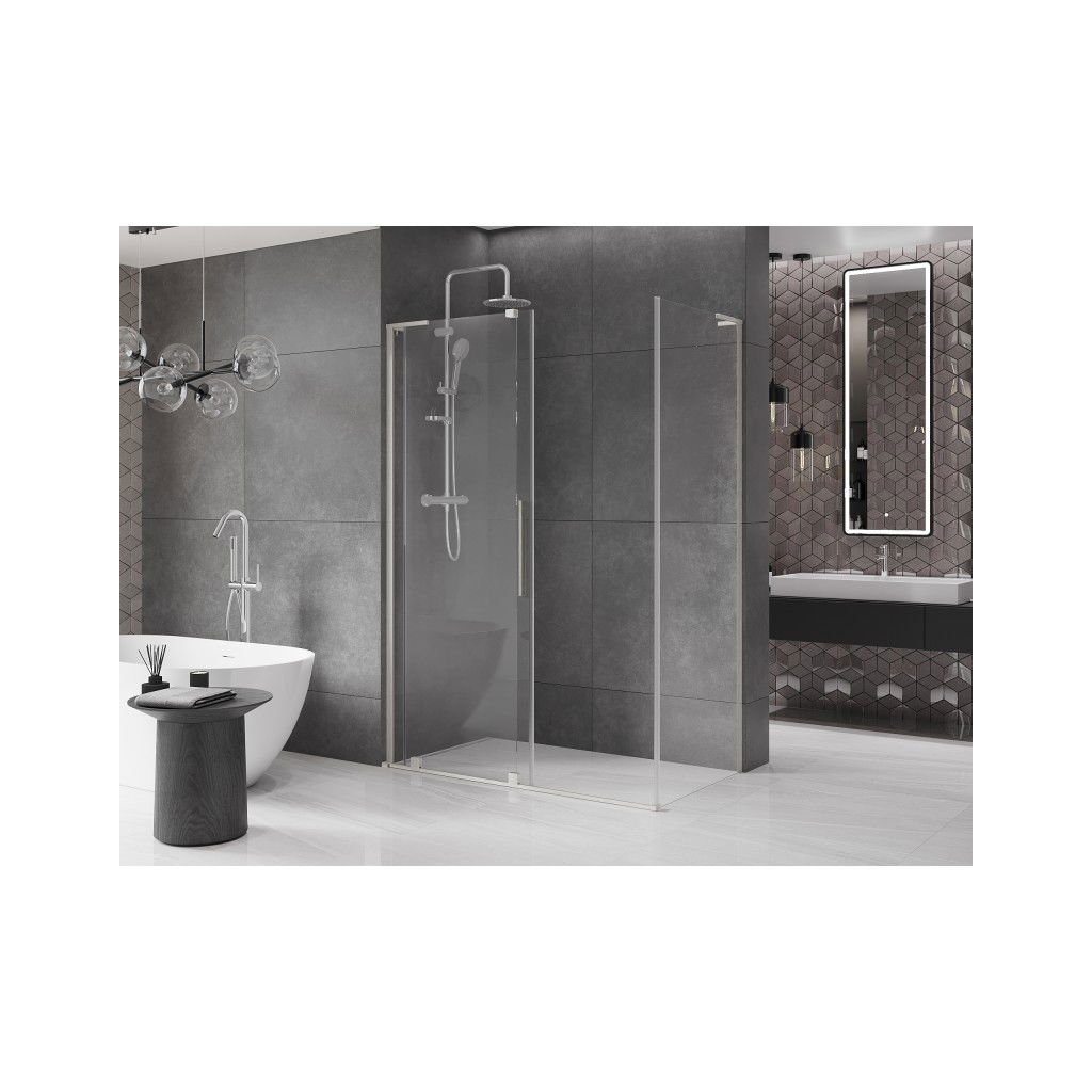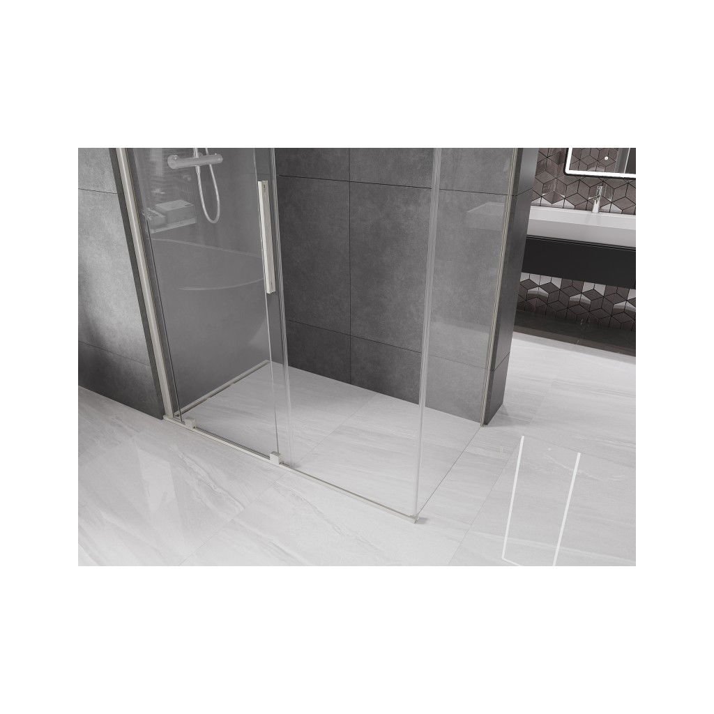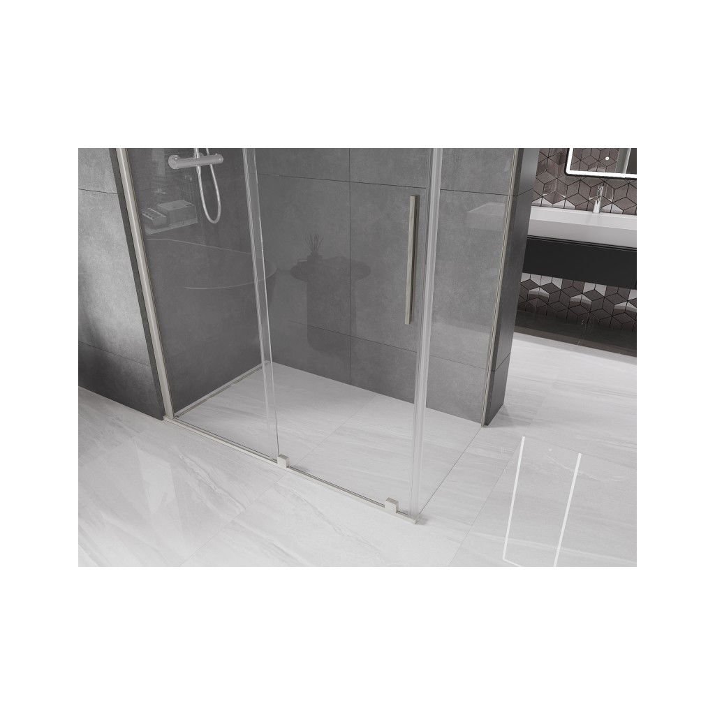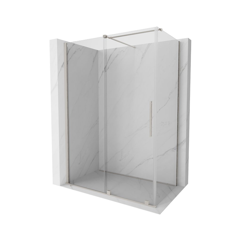 Mexen Velar, sprchový kút s posuvnými dverami 140 x 70 cm, 8mm číre sklo, brúsená oceľ, 871-140-070-01-97