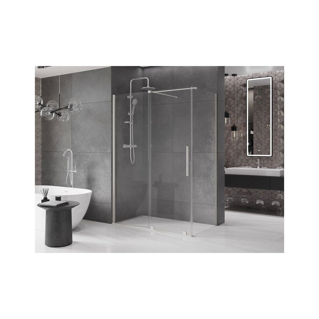 Mexen Velar, sprchový kút s posuvnými dverami 140 x 85 cm, 8mm číre sklo, brúsená oceľ, 871-140-085-01-97
