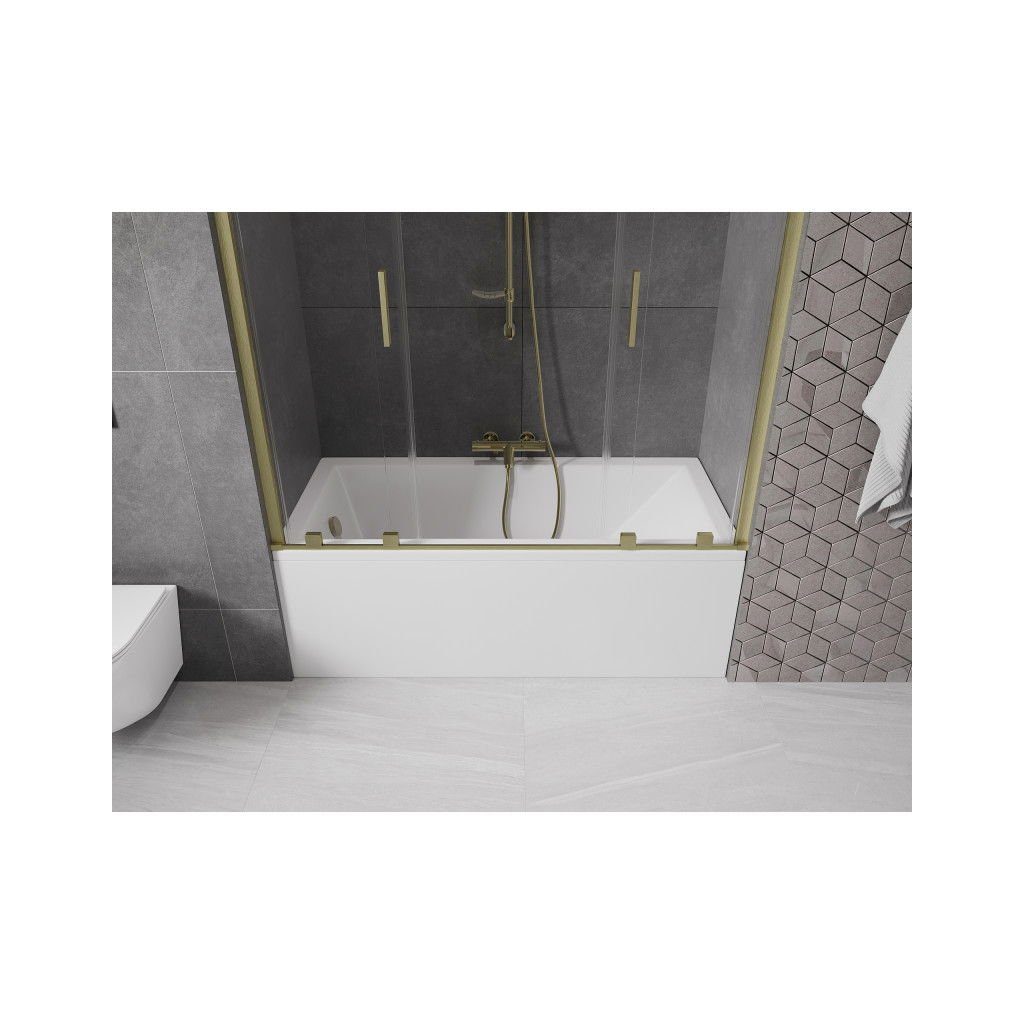 Mexen Velar Duo, 2-krídlová posuvná vaňová zástena 140 x 150 cm, 8mm číre sklo, zlatý matný profil, 896-140-000-02-55