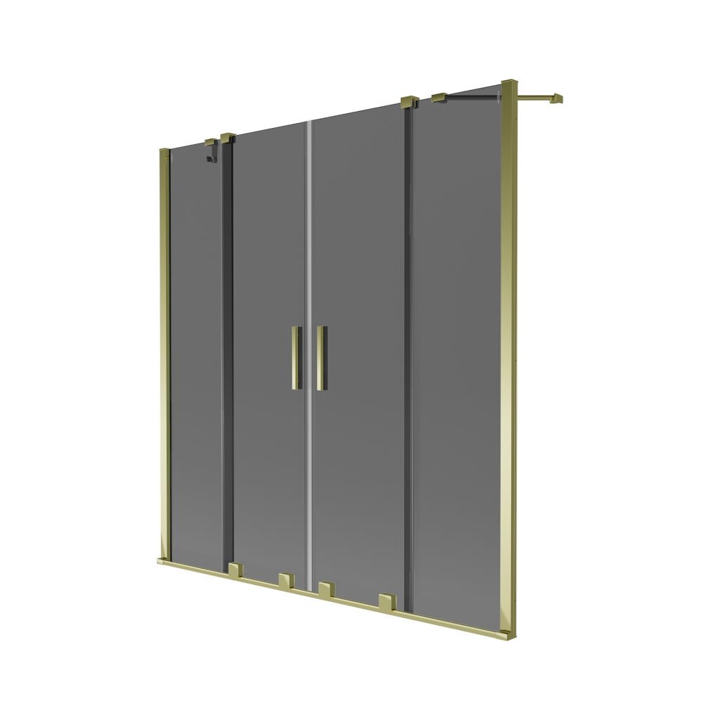 Mexen Velar Duo, 2-krídlová posuvná vaňová zástena 140 x 150 cm, 8mm šedé sklo, zlatý lesklý profil, 896-140-000-42-50