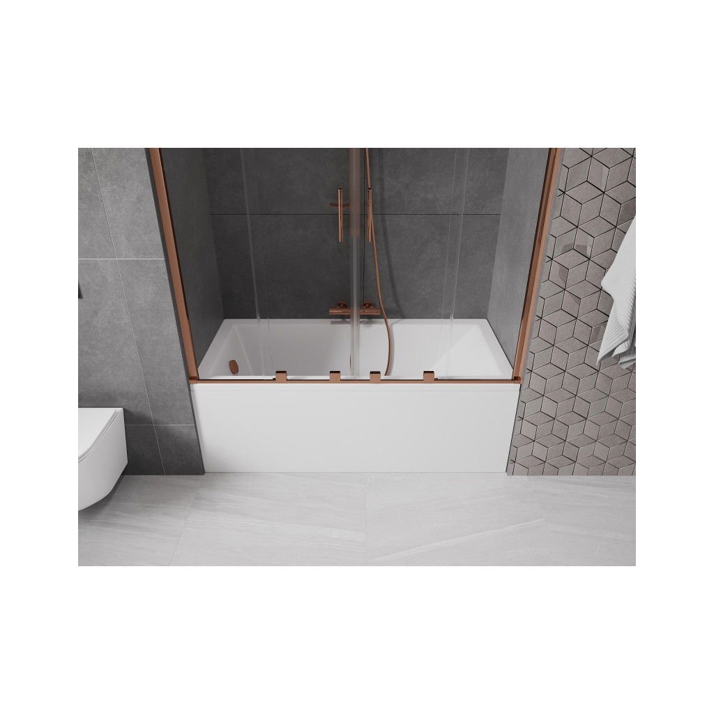 Mexen Velar Duo, 2-krídlová posuvná vaňová zástena 150 x 150 cm, 8mm číre sklo, ružové zlato profil, 896-150-000-02-60