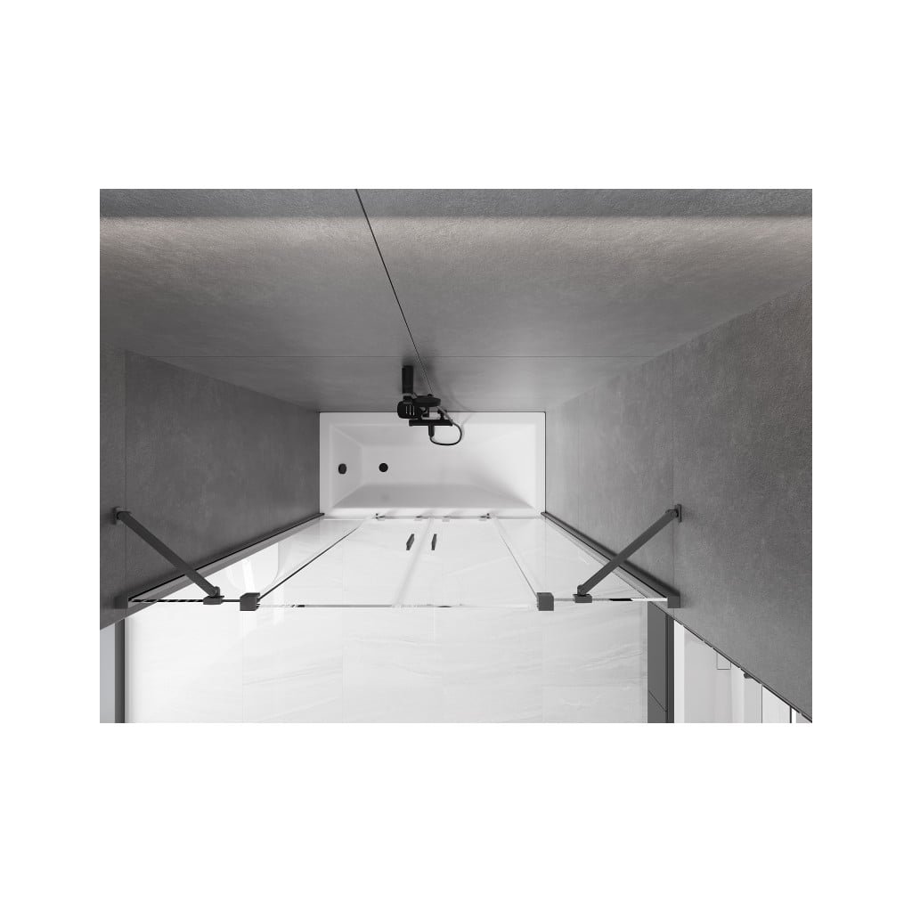 Mexen Velar Duo, 2-krídlová posuvná vaňová zástena 160 x 150 cm, 8mm číre sklo, grafitový matný profil, 896-160-000-02-66