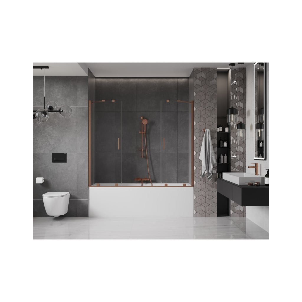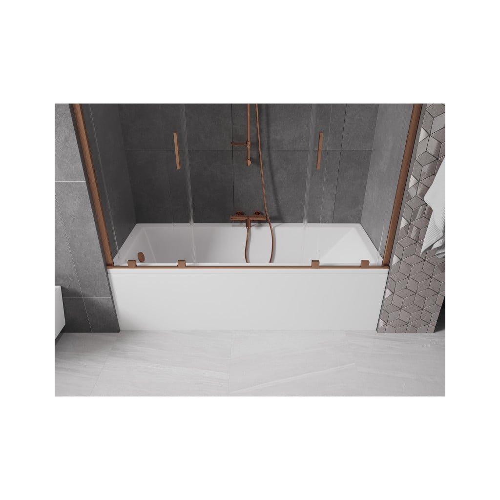 Mexen Velar Duo, 2-krídlová posuvná vaňová zástena 170 x 150 cm, 8mm číre sklo, medený matný profil, 896-170-000-02-65