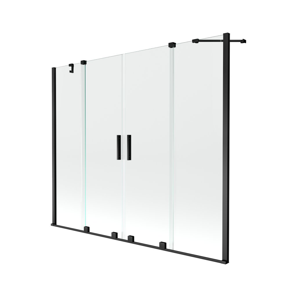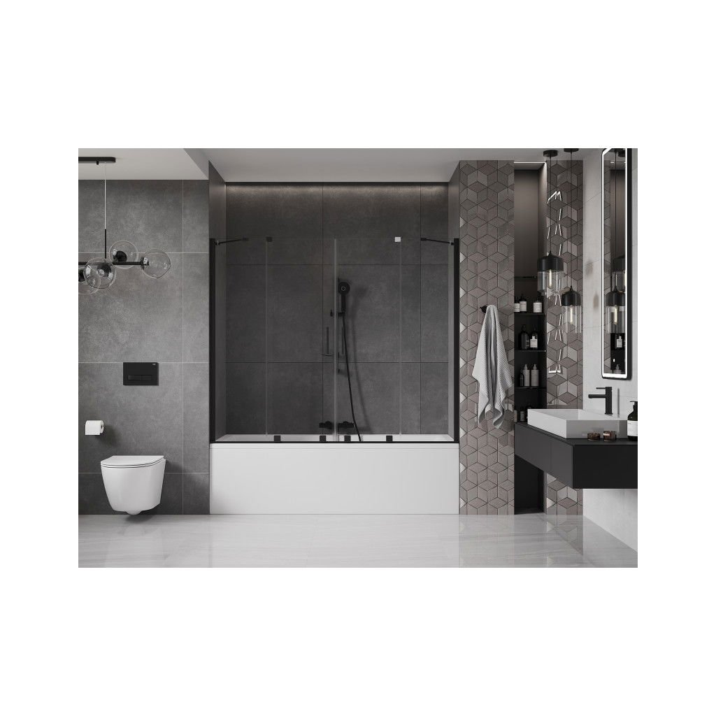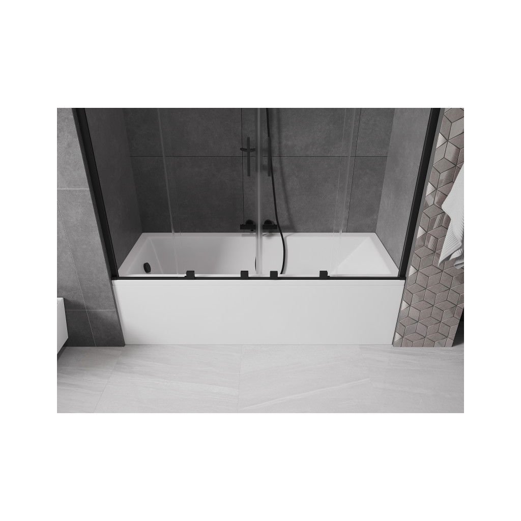 Mexen Velar Duo, 2-krídlová posuvná vaňová zástena 180 x 150 cm, 8mm číre sklo, čierny matný profil, 896-180-000-02-70
