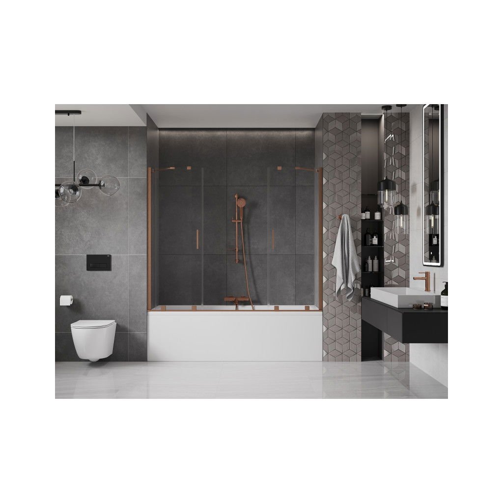 Mexen Velar Duo, 2-krídlová posuvná vaňová zástena 200 x 150 cm, 8mm číre sklo, medený matný profil, 896-200-000-02-65