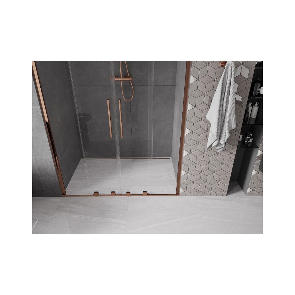 Mexen Velar Duo, posuvné dvere do otvoru 150x200 cm, 8mm číre sklo, ružové zlato, 871-150-000-02-60