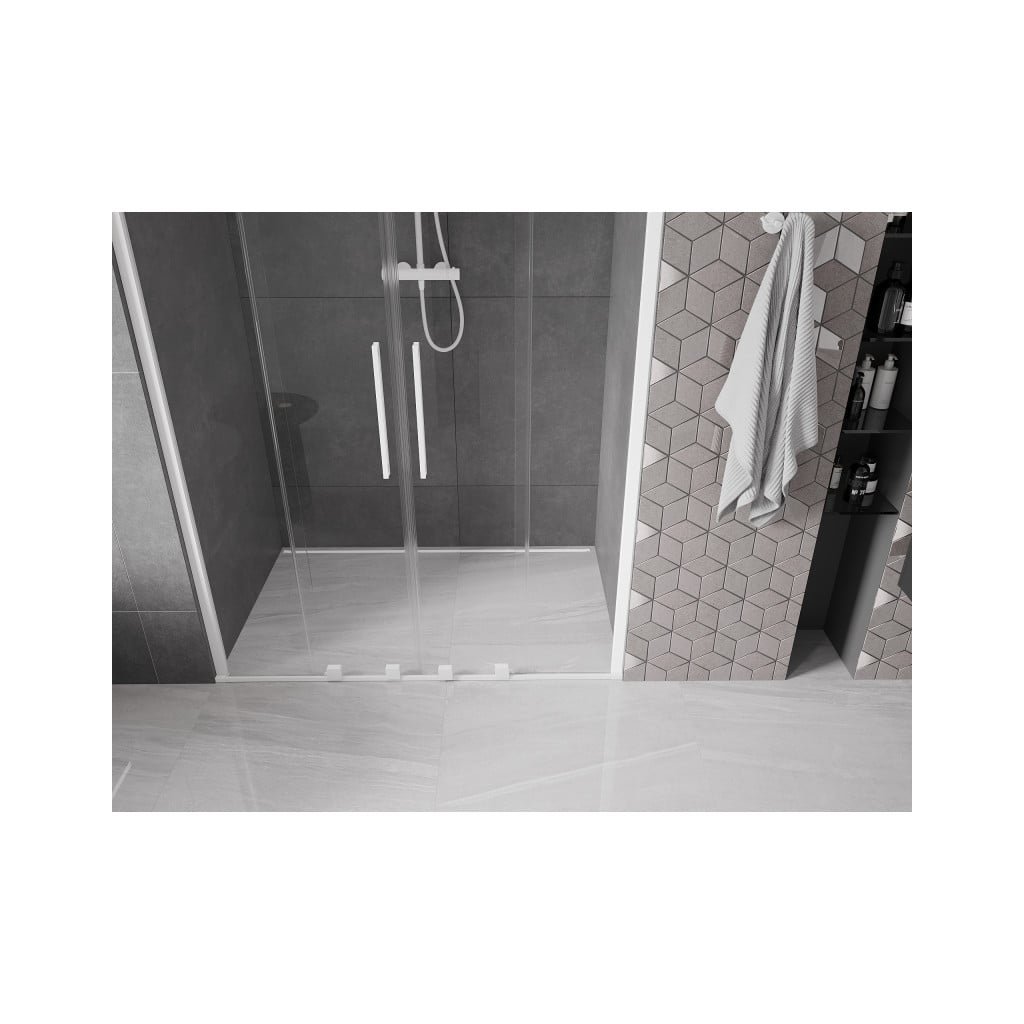 Mexen Velar Duo, posuvné dvere do otvoru 160x200 cm, 8mm číre sklo, biela, 871-160-000-02-20