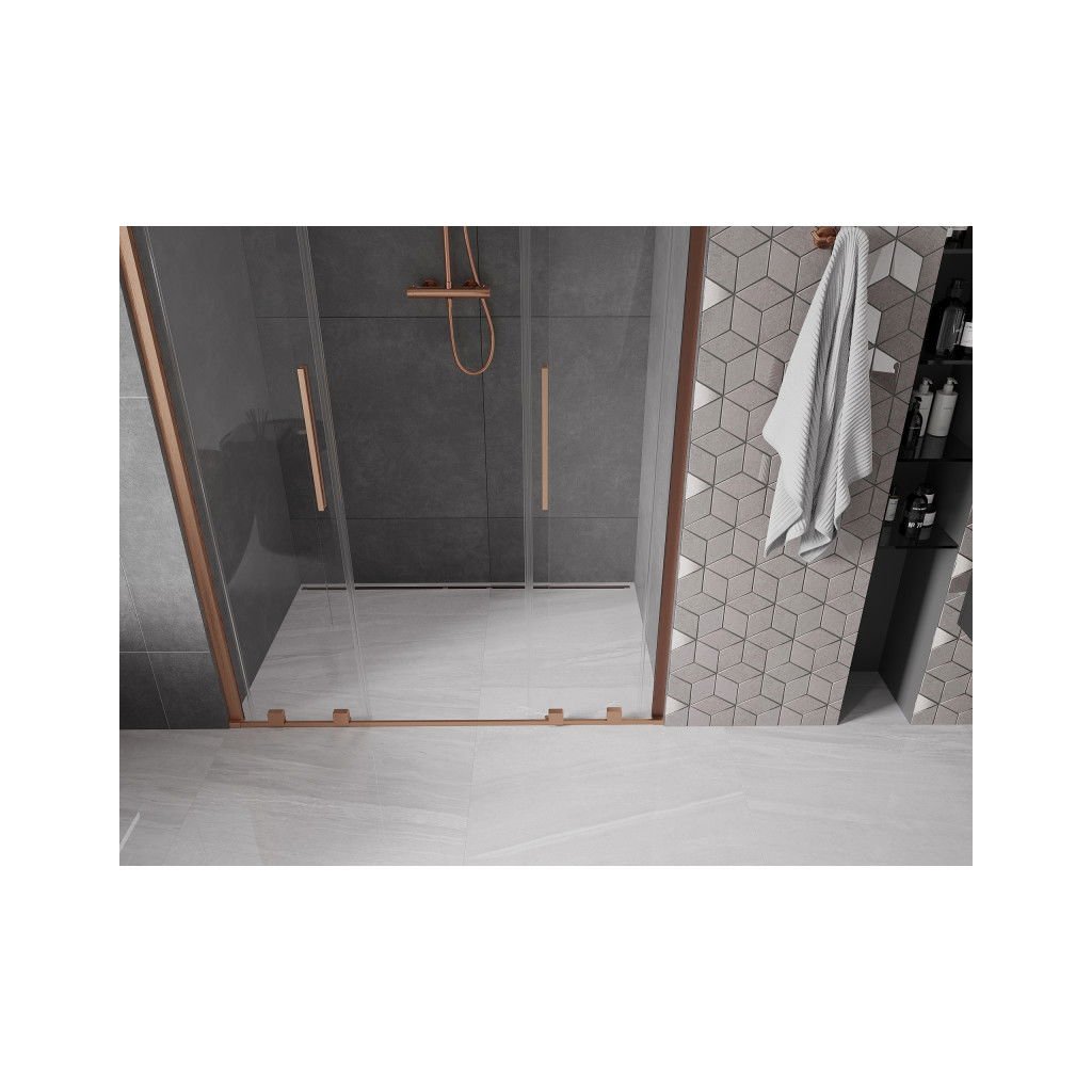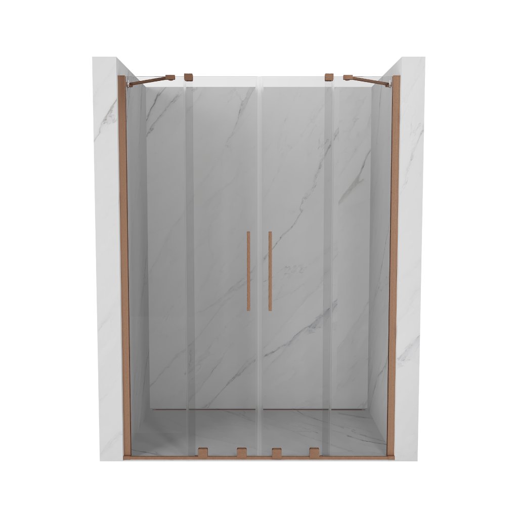 Mexen Velar Duo, posuvné dvere do otvoru 160x200 cm, 8mm číre sklo, medená matná, 871-160-000-02-65