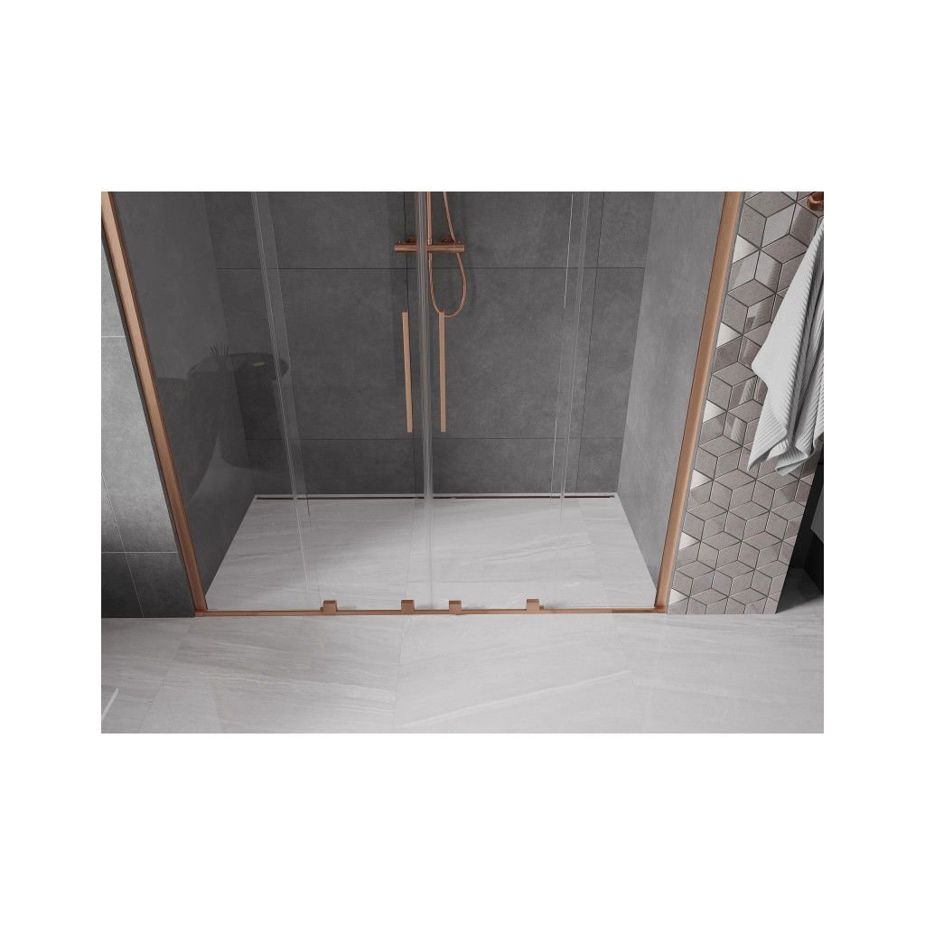 Mexen Velar Duo, posuvné dvere do otvoru 180x200 cm, 8mm číre sklo, medená matná, 871-180-000-02-65