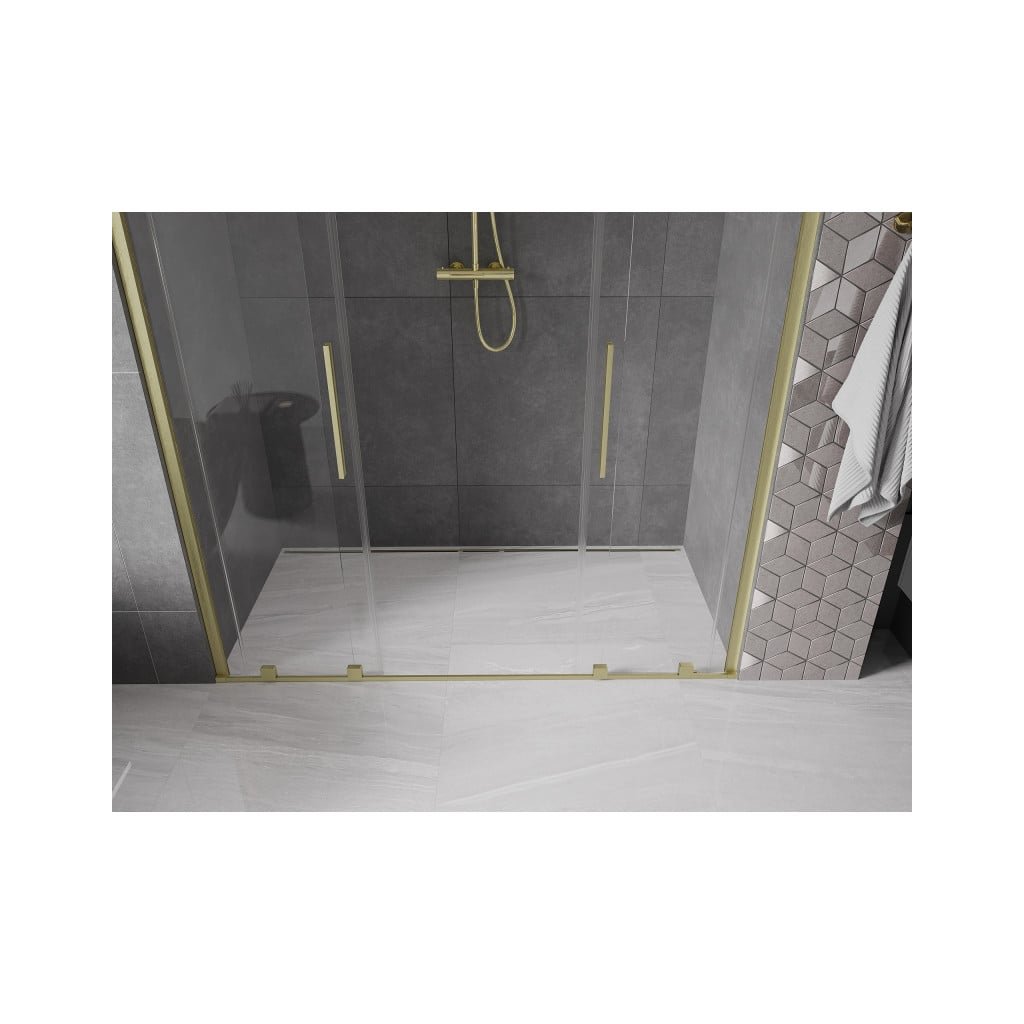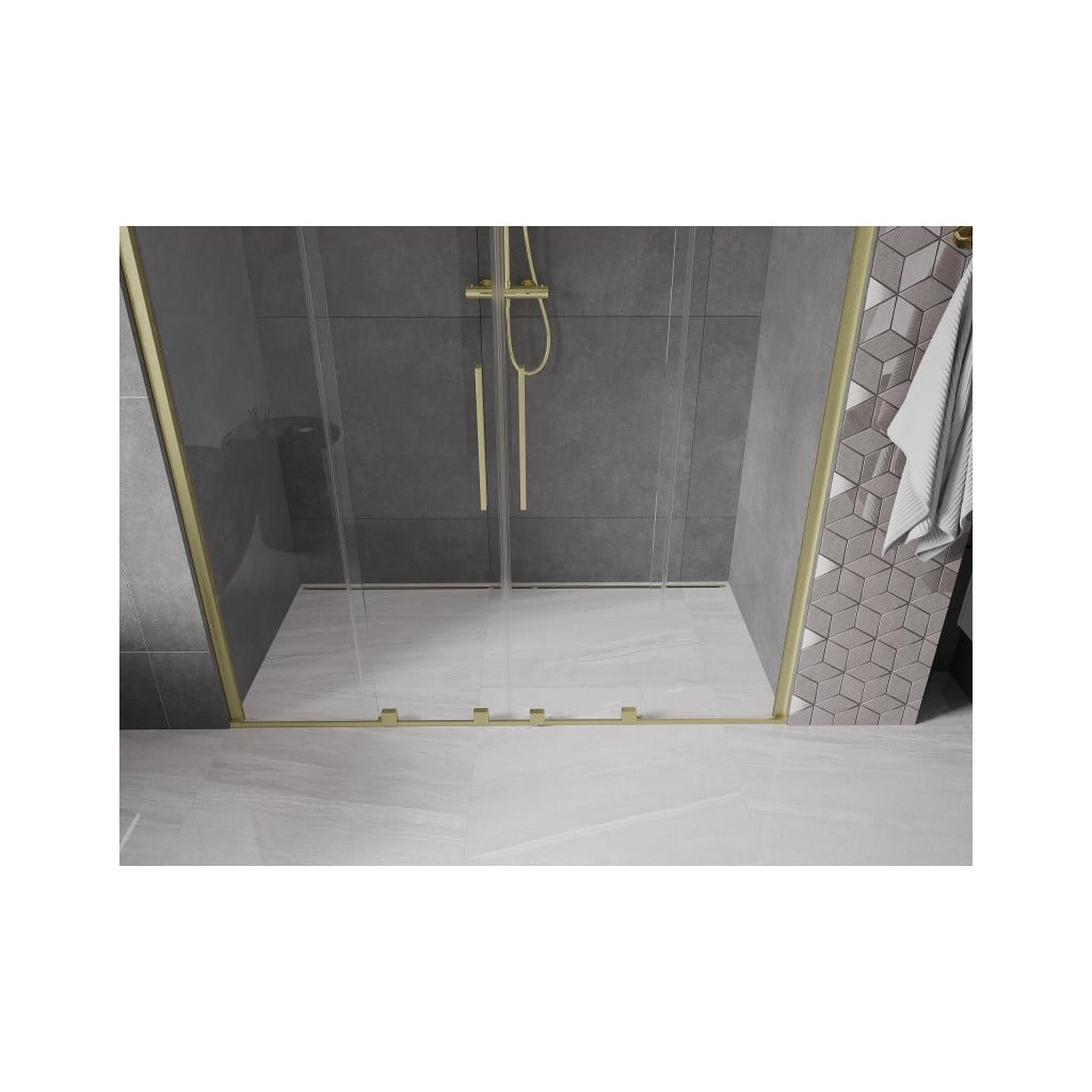 Mexen Velar Duo, posuvné dvere do otvoru 180x200 cm, 8mm číre sklo, zlatá matná, 871-180-000-02-55