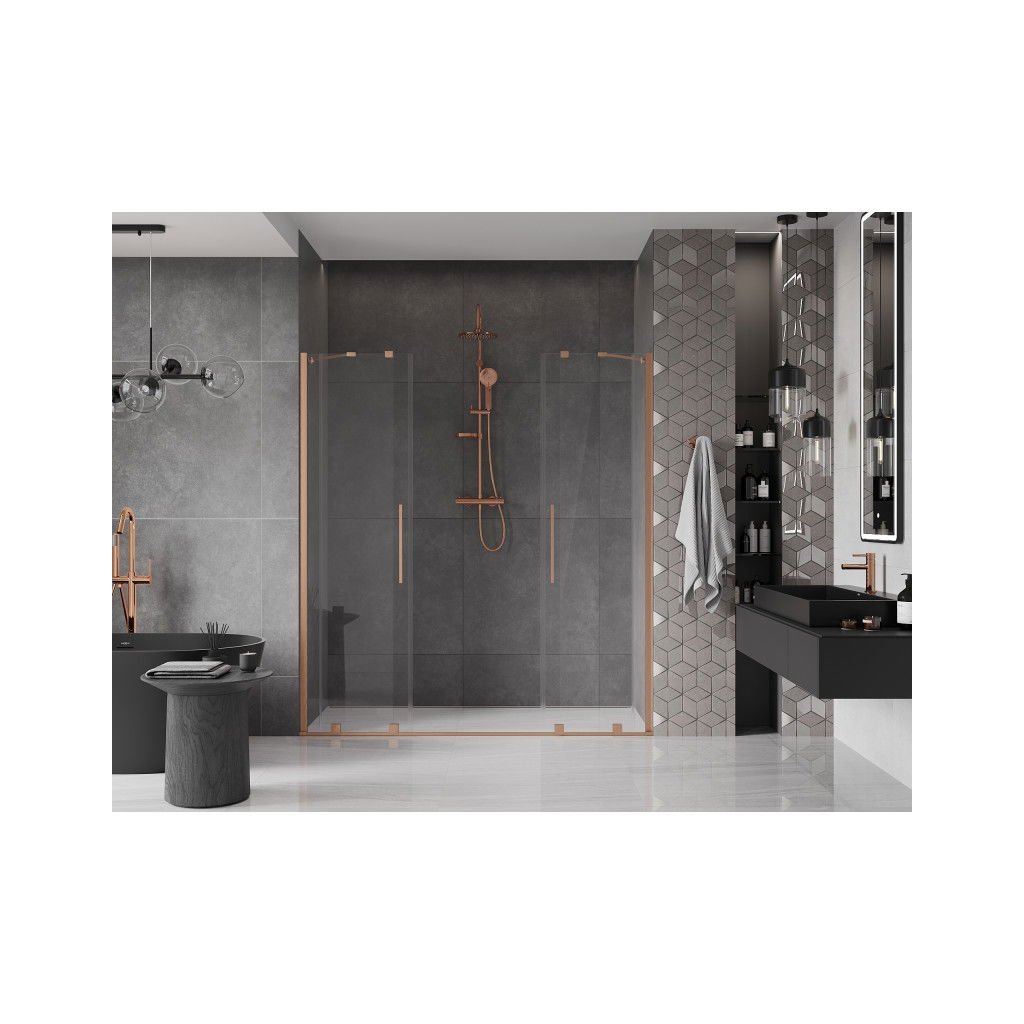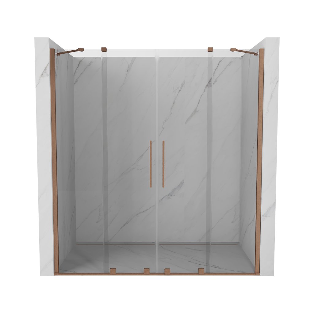 Mexen Velar Duo, posuvné dvere do otvoru 200x200 cm, 8mm číre sklo, medená matná, 871-200-000-02-65