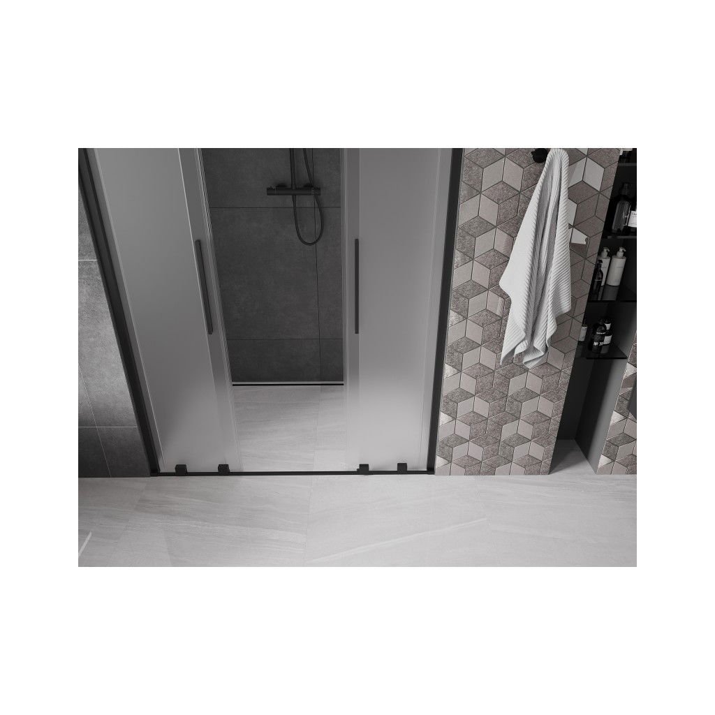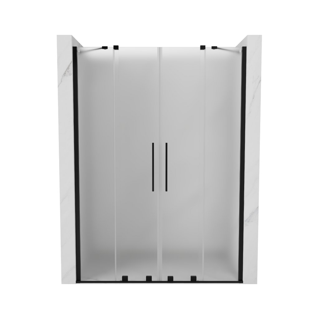 Mexen Velar Duo, posuvné sprchové dvere do otvoru 140 cm, 8mm sklo námraza, čierna matná, 871-140-000-32-70