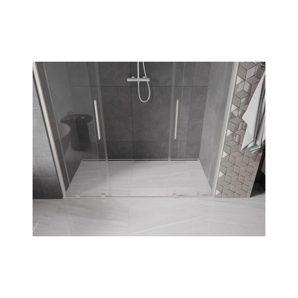 Mexen Velar Duo, posuvné sprchové dvere do otvoru 170 cm, 8mm číre sklo, brúsená oceľ, 871-170-000-02-97
