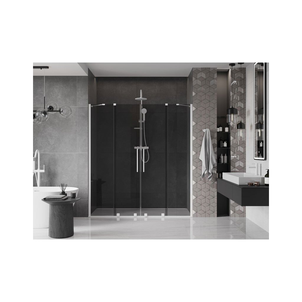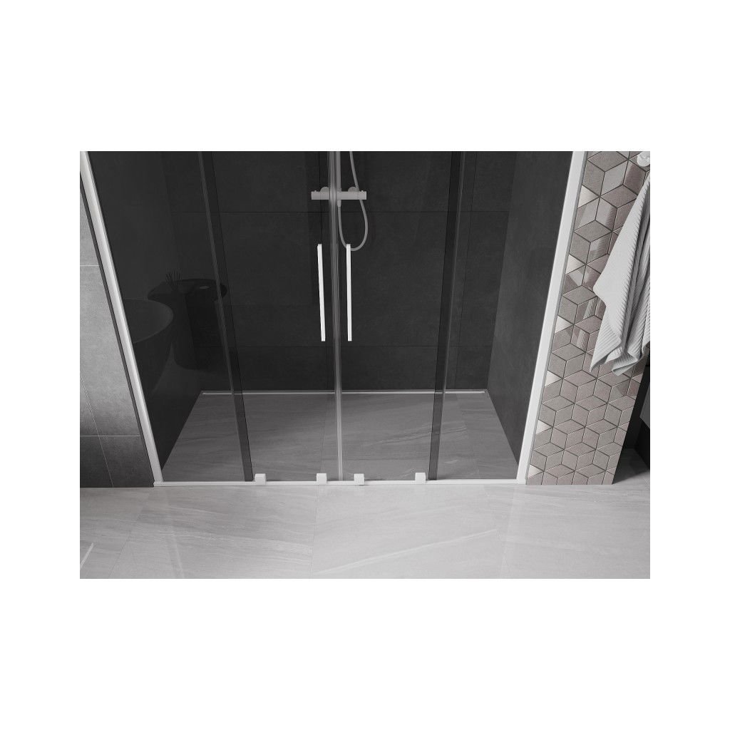 Mexen Velar Duo, posuvné sprchové dvere do otvoru 180 cm, 8mm šedé sklo, biela matná, 871-180-000-42-20
