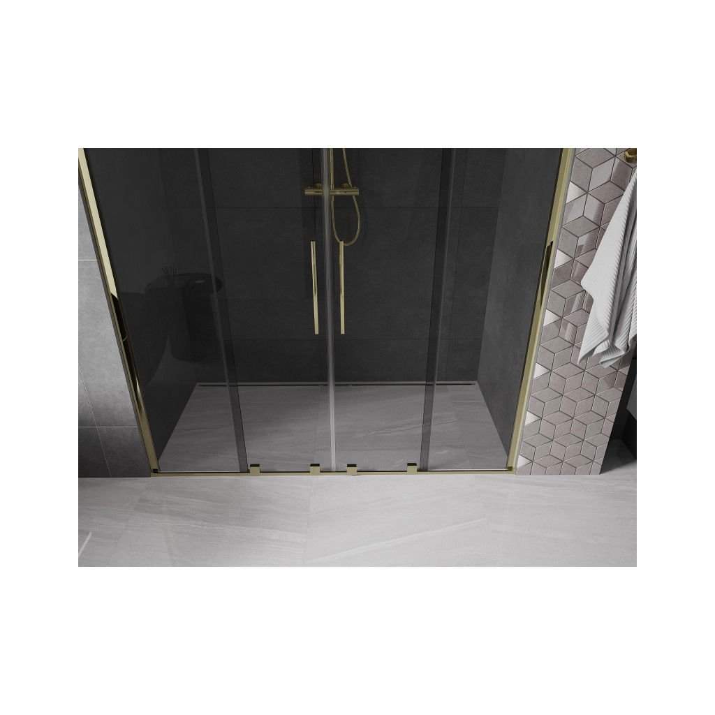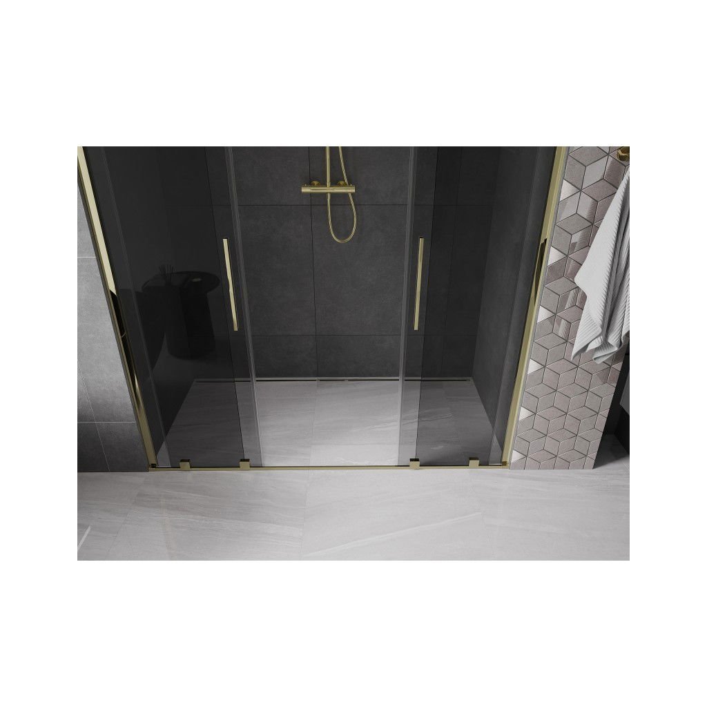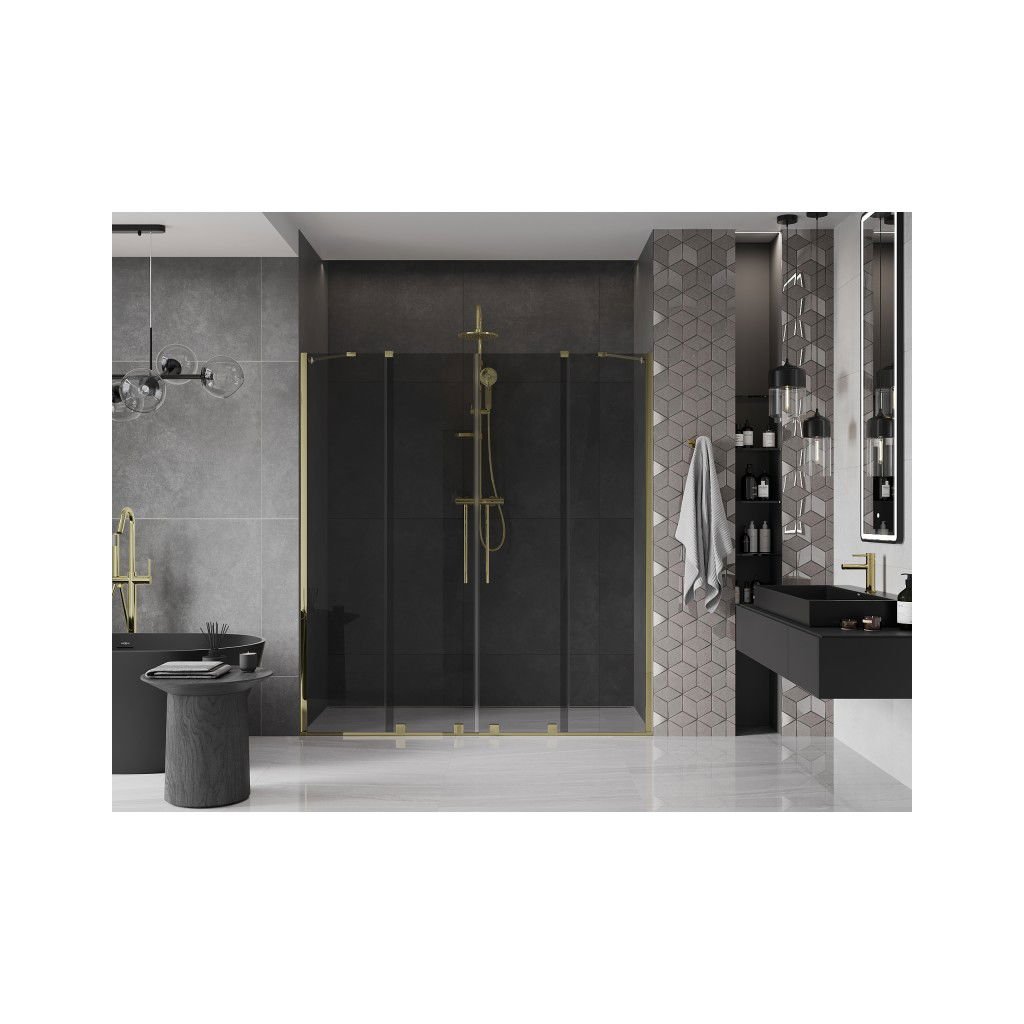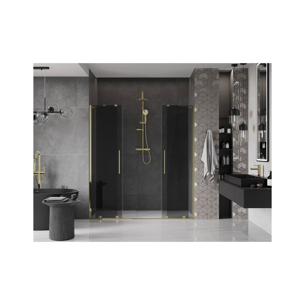 Mexen Velar Duo, posuvné sprchové dvere do otvoru 200 cm, 8mm šedé sklo, zlatá lesklá, 871-200-000-42-50