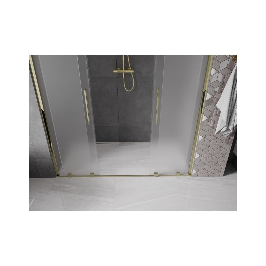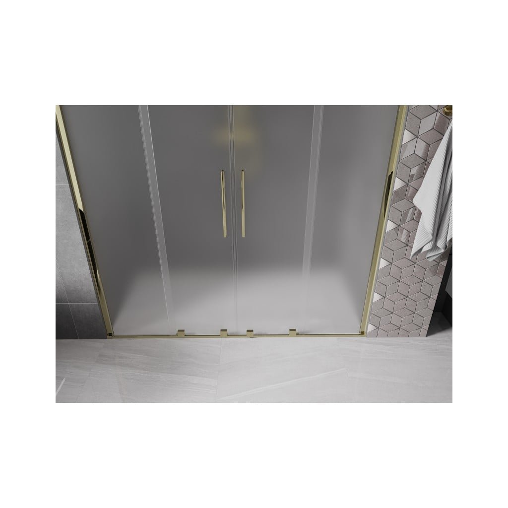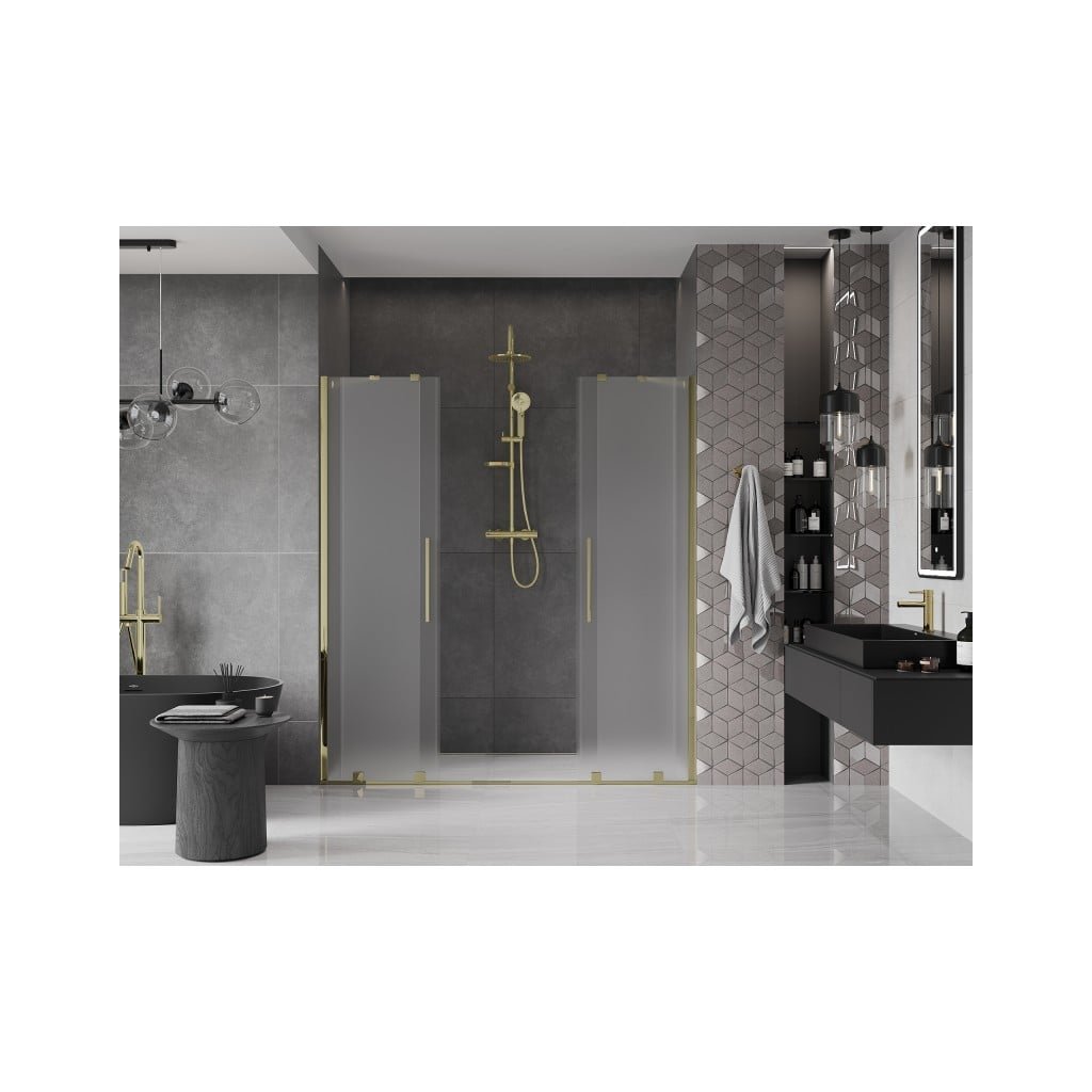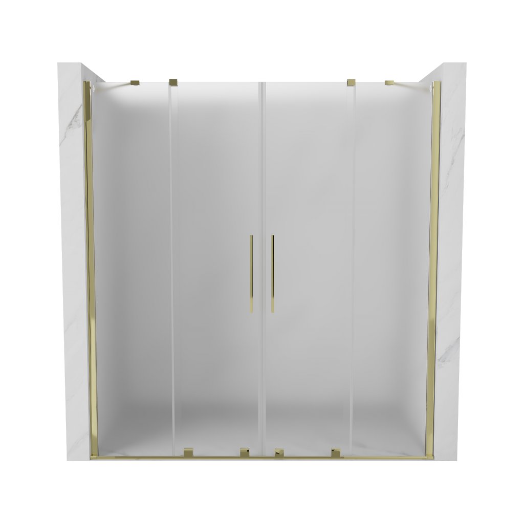 Mexen Velar Duo, posuvné sprchové dvere do otvoru 200 cm, 8mm sklo námraza, zlatá lesklá, 871-200-000-32-50