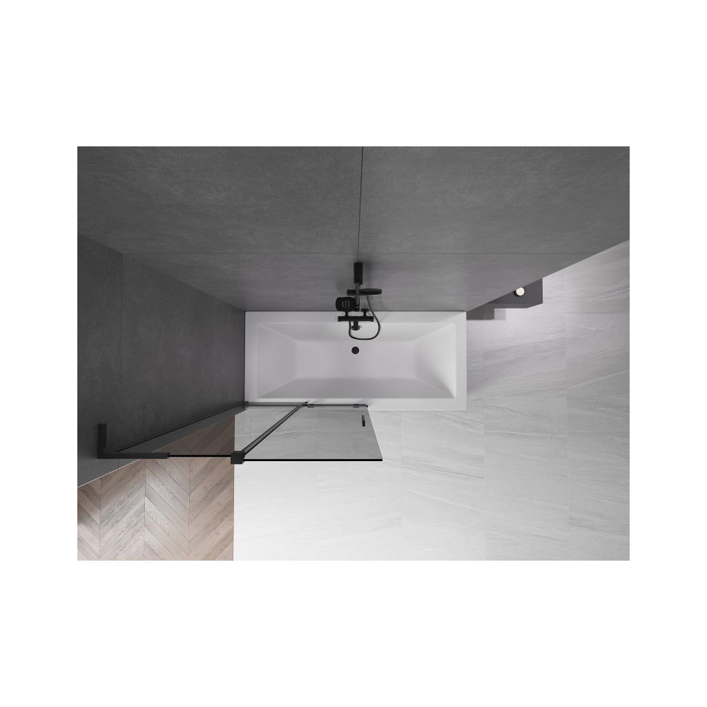 Mexen Velar L, 2-krídlová posuvná vaňová zástena 100 x 150 cm, 8mm šedé sklo, čierna matná, 896-100-003-41-70